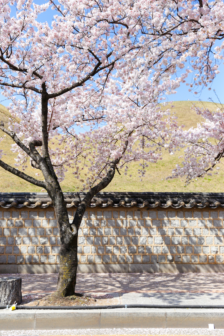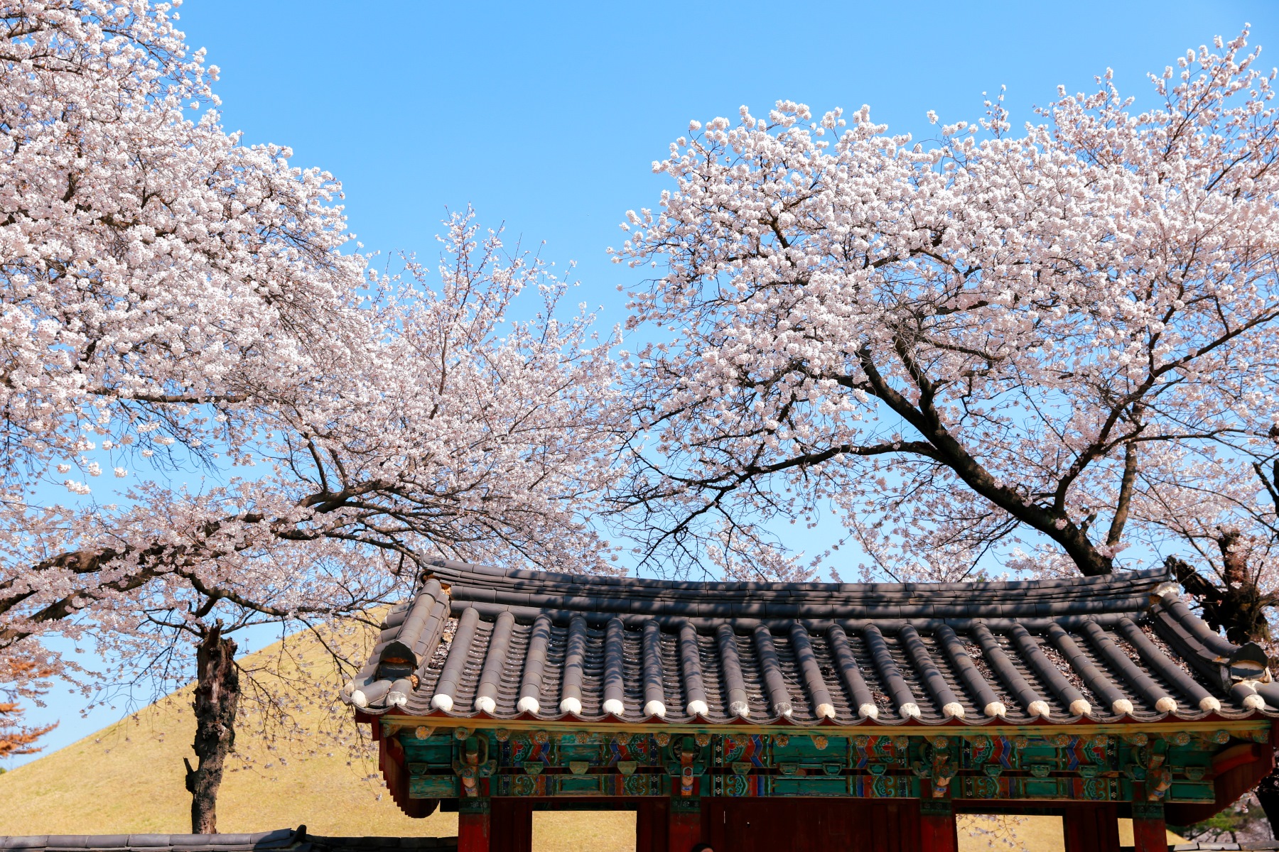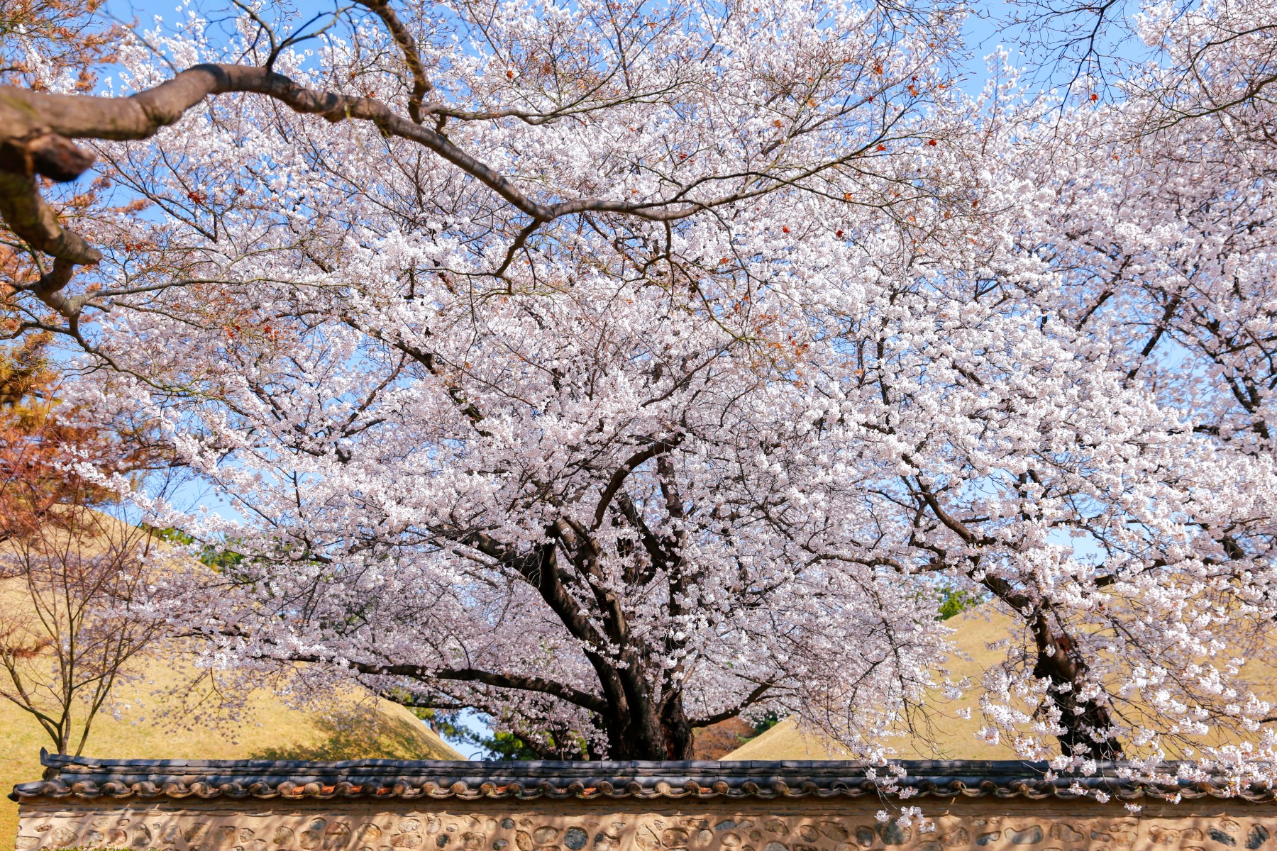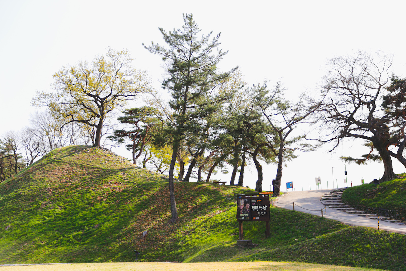 Vào mùa hoa anh đào, ngoài suối Yeojwacheon ở Jinhae, có lẽ con đường quanh quần thể lăng mộ Daereungwon là nơi xuất hiện nhiều nhất trên các trang mạng xã hội. Con đường này có thể không phải nơi trồng nhiều hoa anh đào nhất tại Hàn Quốc, nhưng những bức tường thành đầy phong vị hoài cổ của khu lăng mộ đã khiến các bức ảnh chụp tại đây lúc nào cũng đẫm vẻ nên thơ.