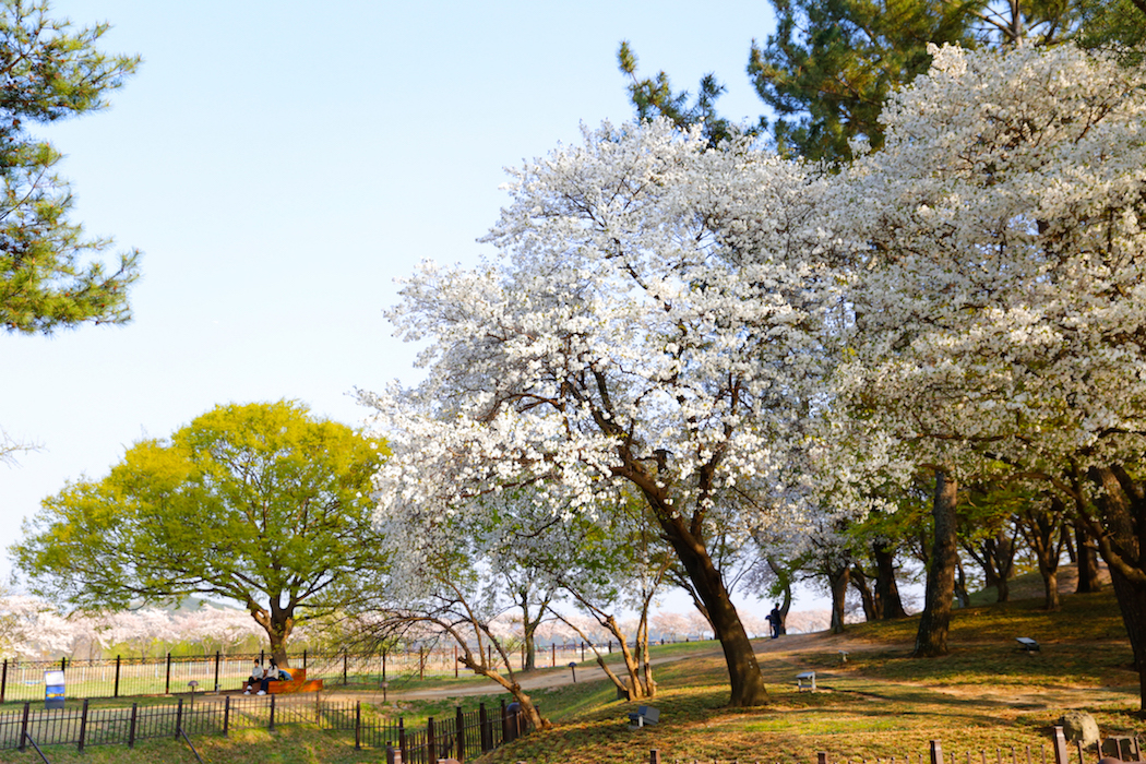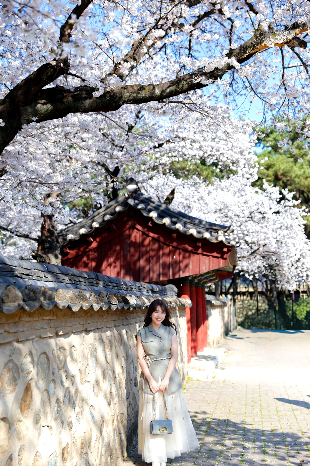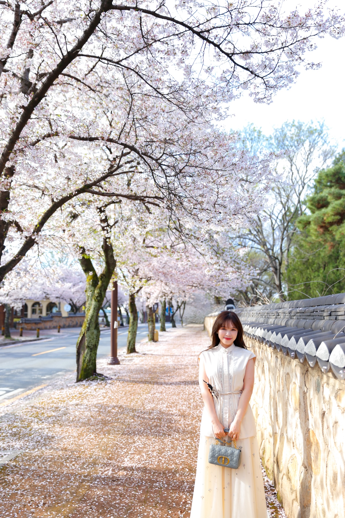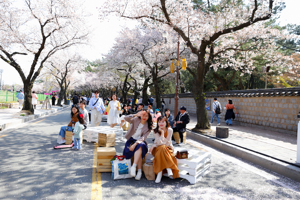 Vào mùa hoa anh đào, ngoài suối Yeojwacheon ở Jinhae, có lẽ con đường quanh quần thể lăng mộ Daereungwon là nơi xuất hiện nhiều nhất trên các trang mạng xã hội. Con đường này có thể không phải nơi trồng nhiều hoa anh đào nhất tại Hàn Quốc, nhưng những bức tường thành đầy phong vị hoài cổ của khu lăng mộ đã khiến các bức ảnh chụp tại đây lúc nào cũng đẫm vẻ nên thơ.