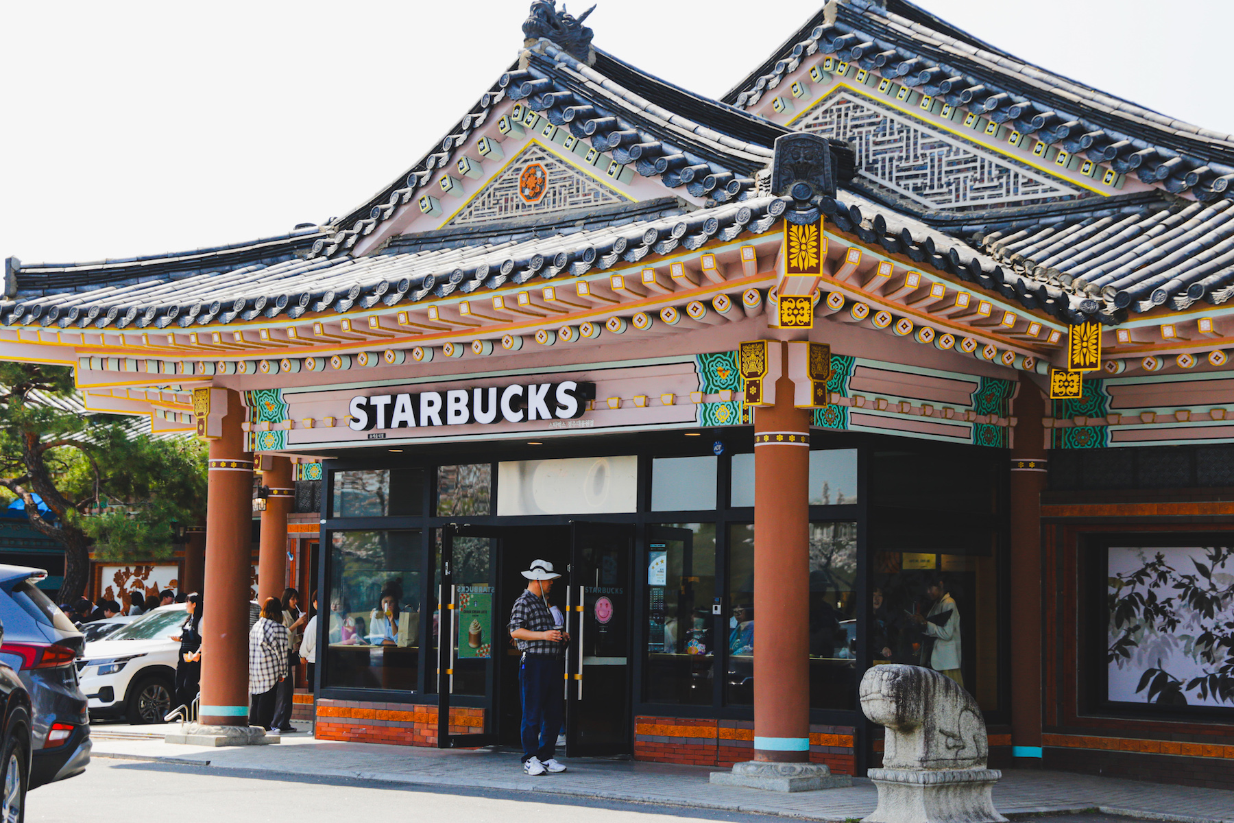Sau khi ăn dầm ở dề chán chê tại con đường bao quanh khu mộ cổ, bà con hãy rong ruổi đi bộ tiếp để khám phá vẻ đẹp cố kính bình yên của cố đô Gyeongju. Hoàn toàn không có những toà nhà cao tầng hiện đại như kiểu các thành phố sôi động Seoul hay Busan, khu vực này của Gyeongju tập trung nhiều di tích cổ xưa nên không gian rất rộng mở thoáng đãng. Ngay cả những quán cafe dọc đường cũng đều là những ngôi nhà 1 tầng rực rỡ màu sắc với phần mái đặc trưng kiến trúc Hàn xẻng.