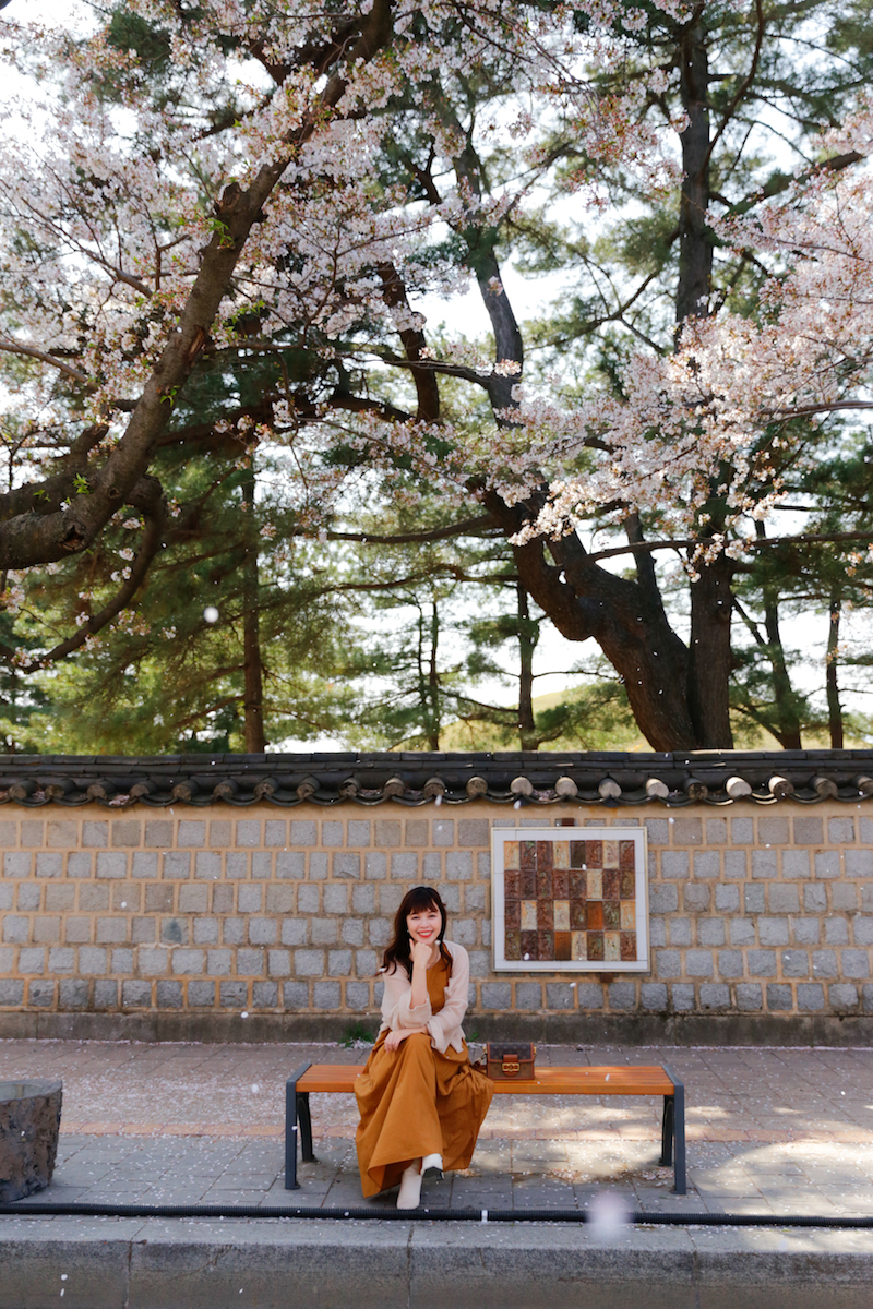 Nếu con đường Daereungwon quá đông đúc, bạn hãy thử tìm đến Oreung Royal Tombs stonewall, chỉ cách trung tâm tầm 1,4km. Năm 2026 Kịt rất thích khi khám phá ra địa điểm này, một góc vẫn có những bức tường đá cổ chạy dài bên khu lăng mộ hoàng gia nhưng vắng vẻ hơn, tĩnh lặng hơn và chậm rãi hơn. Vào mùa xuân, hoa anh đào nở dọc theo lối tường đá, làm mềm đi vẻ cổ kính của di tích. Sự đối lập giữa đá xưa và sắc hoa mong manh tạo nên một background rất điện ảnh.