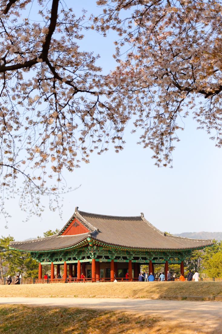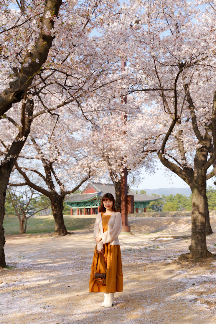 Dù cách khu trung tâm cũng phải 10km nhưng gần như du khách nào tới thăm Gyeongju mùa hoa anh đào cũng phải ghé tới đây để chụp lại một khung hình được xếp vào hàng kinh điển.