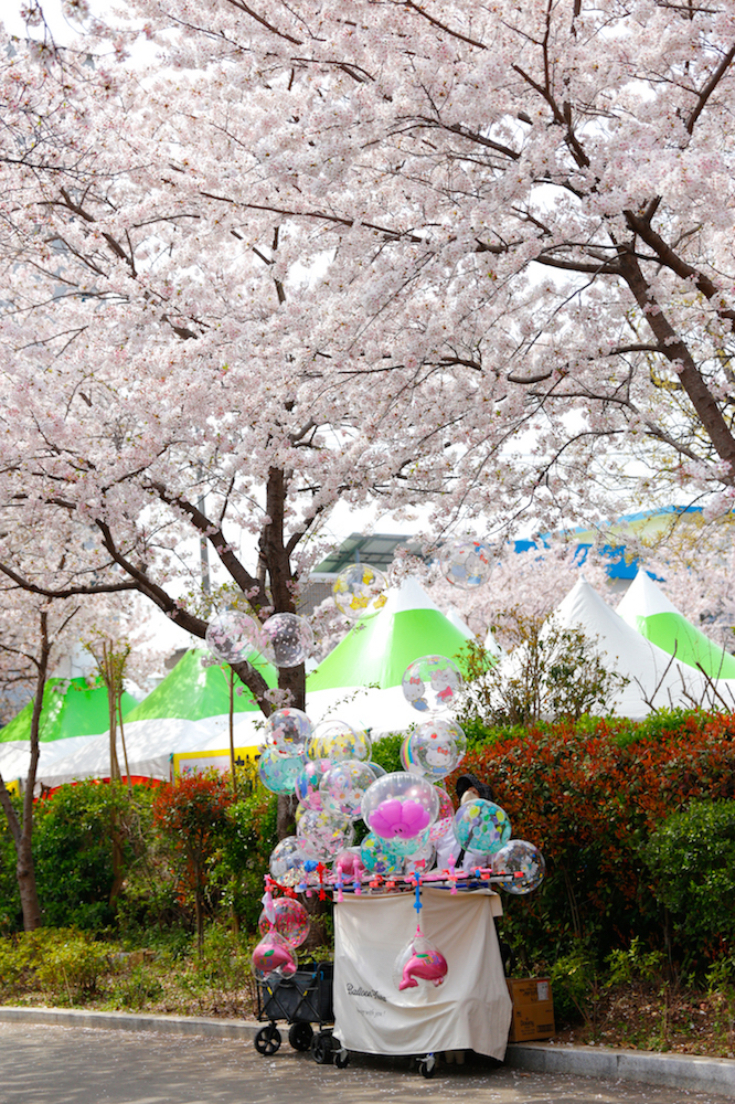 Với những bạn nghỉ đêm tại Jinhae, lời khuyên chân thành là hãy đến suối Yeojwacheon từ sáng sớm bởi chỉ sau 9g là nơi đây bắt đầu đông nghịt người. Hôm nay chủ nhật đúng ngày lễ hội, số người đổ về địa điểm này thậm chí còn đông hơn. Vừa đặt chân xuống bến bus, Kịt đã cảm nhận không khí Festival tại Jinhae, khác hẳn với style thanh bình yên ả của cố đô Gyeongju một ngày trước đó.