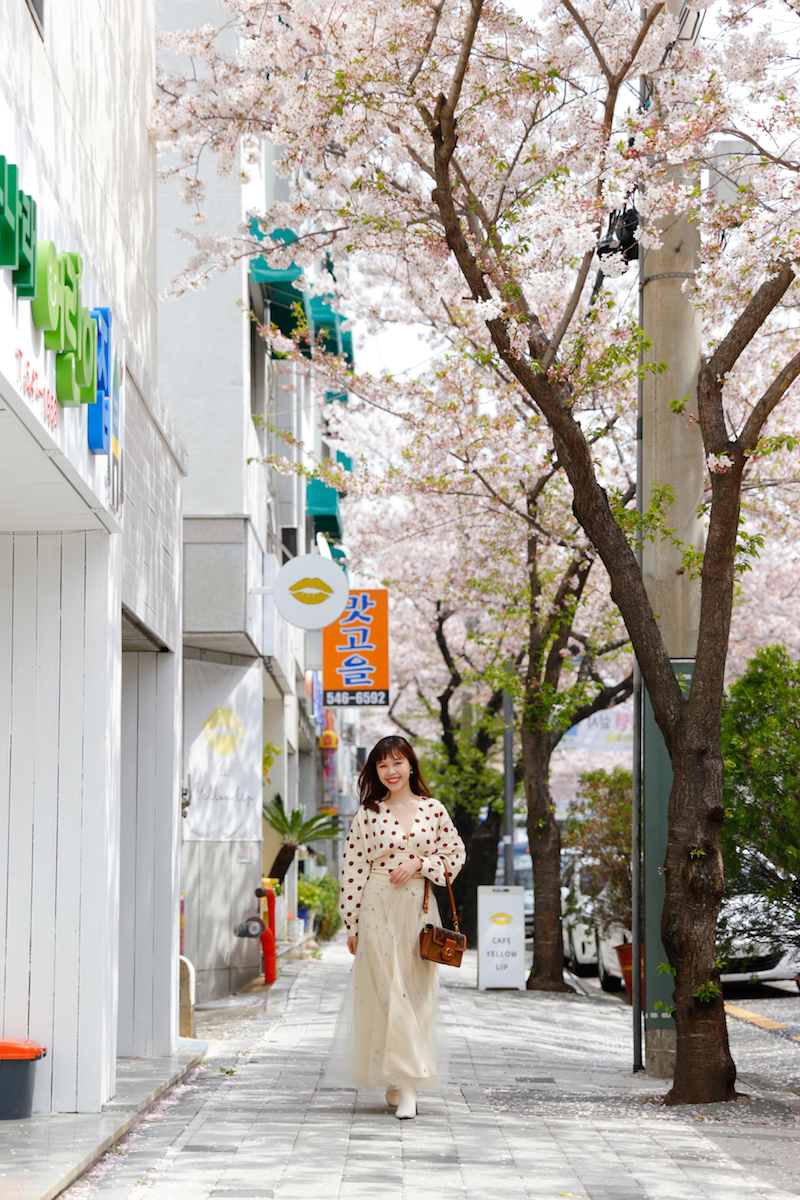 Quận Jinhae có vô số điểm ngắm hoa anh đào, có thể kể đến như Suối Yeojwacheon, Ga xe lửa Gyeonghwa, Công viên núi Jehwangsan, Công viên điêu khắc Jangboksan... Nếu bạn có 2-3 ngày trải nghiệm ở Jinhae, nhớ dành thời gian đi hết những điểm kể trên nhé. Như Kịt vì chỉ có 1 ngày day trip nên mình lựa chọn mỗi 2 điểm nổi tiếng nhất là suối Yeojwacheon và ga Gyeonghwa, ngoài ra cũng đi lêu hêu thêm để ngắm phố phường. Và chính vì đi lêu hêu nên Kịt mới thừa nhận tại Jinhae có rất nhiều những con đường rợp bóng hoa, cứ đi vu vơ một tí là lại bắt gặp từng hàng cây anh đào rực rỡ.