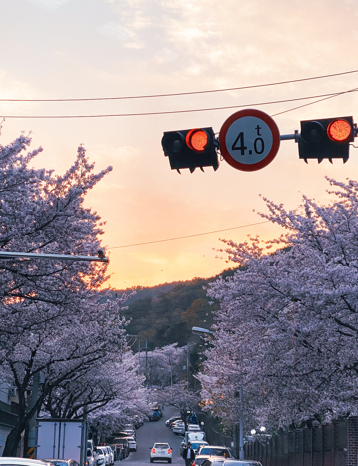 Với Kịt, đây chắc là con đường có hiệu ứng về hoa anh đào mãn nhãn nhất khi sở hữu rất rất nhiều hàng cây trồng vừa dày vừa đều, chưa kể tán cây còn phủ kín cả mặt đường. Khi xuân chạm đỉnh, đồng loạt những mái vòm màu hồng phấn phủ khắp cả không gian tạo nên cảm giác cực kỳ choáng ngợp. Cái cảm giác ngồi trong xe ô tô và đi giữa một đường hầm hoa bạt ngàn, có lẽ chính là để mô tả con đường Heungmu-ro này đấy <3