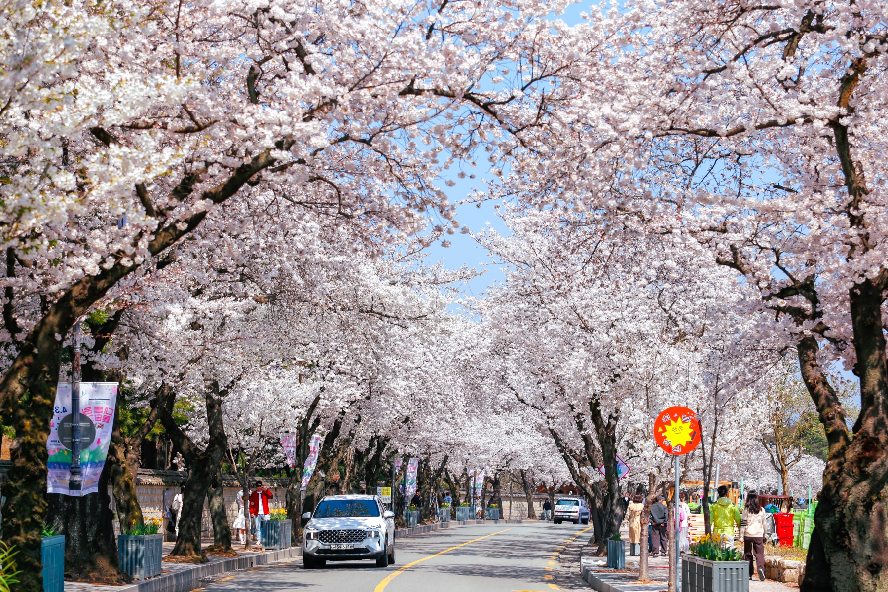 Đường phố Jinhae gần như không đoạn đường nào là không phủ kín hoa anh đào vào thời điểm rực rỡ nhất