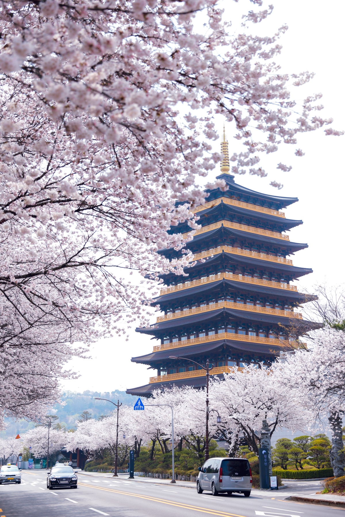 – Đền Bulguksa: Cách khu trung tâm tầm 14km, đặc biệt đẹp vào mùa hoa anh đào kép. Ngoài ra, dọc con đường đi đến Bulguksa cũng trồng rất rất nhiều hoa anh đào.
