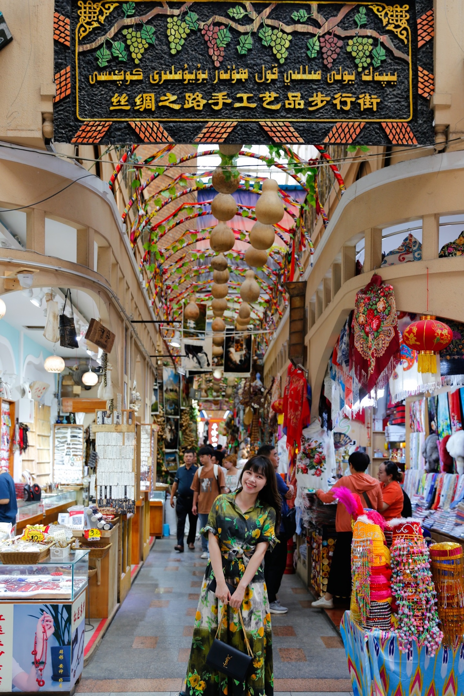 Phiên chợ này hơn ngàn năm trước cũng là nơi dân du mục từ các ốc đảo xa xôi giữa sa mạc cưỡi lạc đà đến trao đổi sản vật. Còn ngày nay, Grand Bazaar đông đúc nhộn nhịp với vô số các gian hàng bán đủ thứ từ đồ lưu niệm đến sản vật địa phương thậm chí cả đồ điện tử. Có những khu chợ bên trong khi bước vào cảm giác như đi thăm chợ Đồng Xuân nhà mình =))) (nhưng phiên bản này rực rỡ màu sắc hơn với đủ hoạ tiết, hoa văn nổi bật của vùng Tân Cương). Dẫu cho Grand Bazaar hiện đại hơn so với tưởng tưởng của Kịt, nhưng ít nhiều khu chợ này cũng vẫn lưu giữ được những dấu ấn đặc trưng của người Duy Ngô Nhĩ.