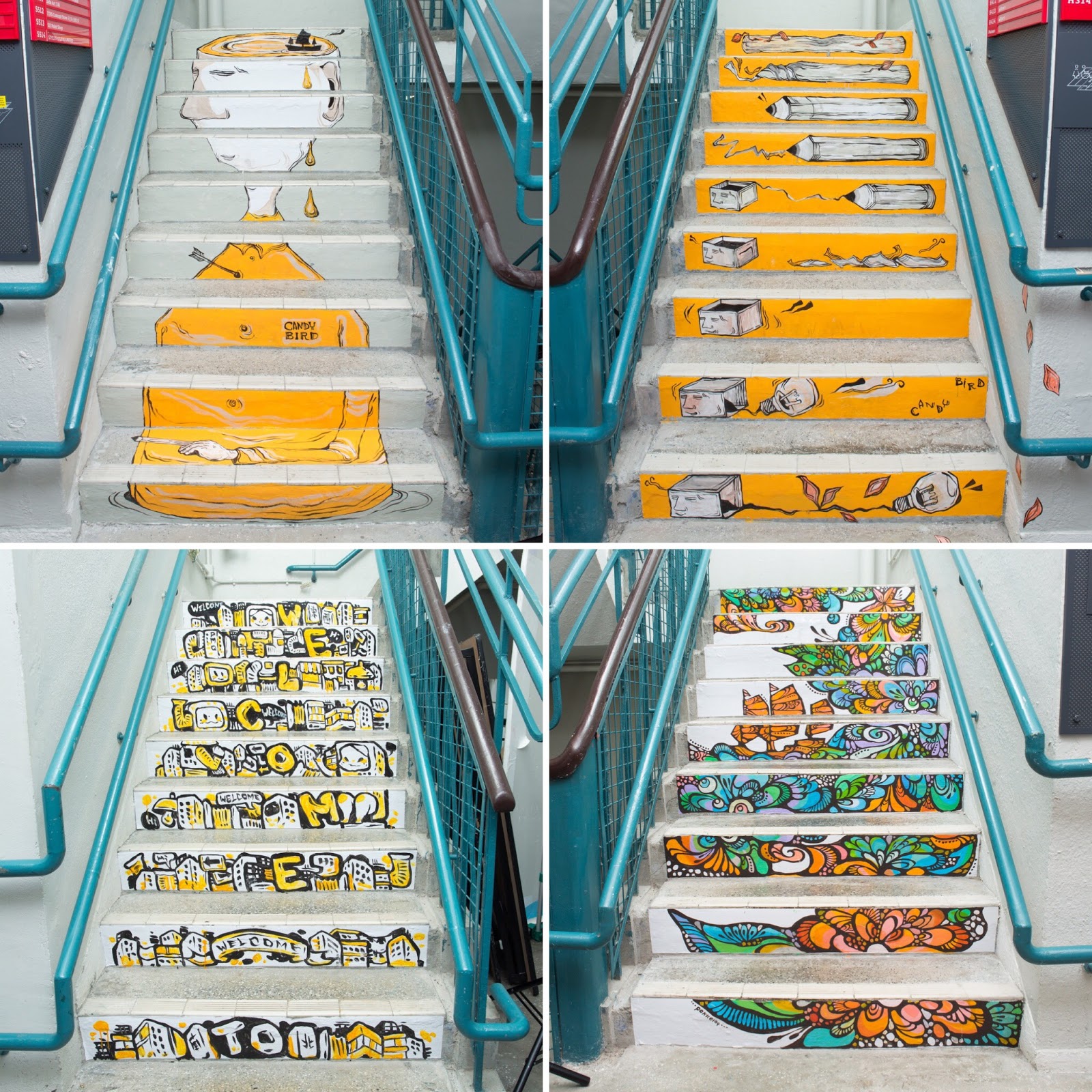 10/ Bức hoạ sắc màu trên bức tường cầu thang
