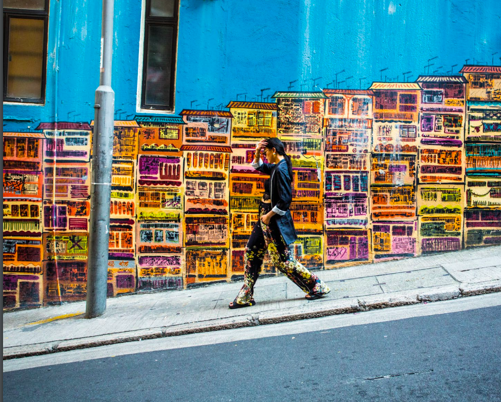 Cũng giống như khu phố cổ Georgetown ở thành phố Penang (Malaysia), Old Town Central ở Hong Kong là một tập hợp của vô số những tác phẩm nghệ thuật đường phố (Có vẻ mấy nước thuộc địa Anh rất chuộng style này). Những bức vẽ graffiti rực rỡ đã thổi hồn cho các bức tường trong từng ngõ nhỏ, trở thành điểm chụp ảnh check-in hàng đầu của du khách khi tới thăm Hong Kong. Dưới đây là hình ảnh và địa chỉ của những bức hoạ nổi bật nhất tại Old Town Central: 1/ Bức tranh những tòa nhà tập thể tong lau mang tính biểu tượng của Hồng Kông. Đây là một trong những bức hình được check-in chụp ảnh nhiều nhất ở khu Old Central Địa chỉ: Ngã tư của 46 Graham Street và 48 Hollywood Road, CentralNguồn ảnh: Từ cuốn “Old Town Central – Self-guide walk”