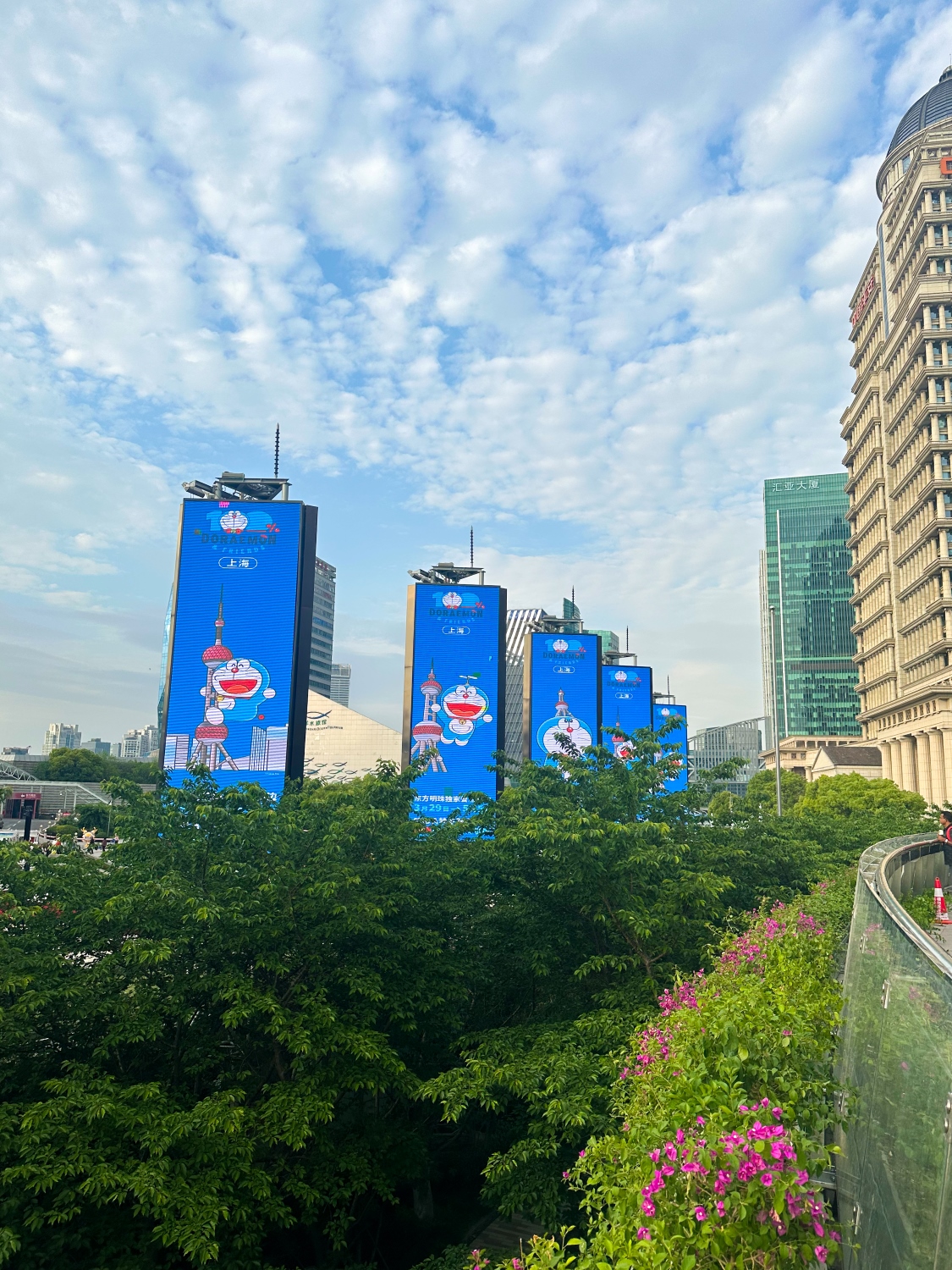 Bên kia bờ Đông thì hiện đại và cao tầng. Lúc đứng trên cầu kính nhìn toàn cảnh thành phố tự nhiên thấy Doraemon xuất hiện khắp nơi, xúc động quá phải chụp ngay lại !!!