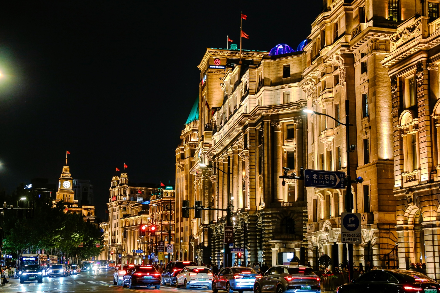 Từ trục đường Beijing, cả bọn bắt đầu đi bộ ra The Bund, nơi tập trung hơn 50 công trình kiến trúc mang phong cách châu Âu như Gothic, Baroque, Tân cổ điển hay Art Deco, tạo nên một đại lộ lịch sử được mệnh danh là “Bảo tàng kiến trúc thế giới”. Những tòa nhà sững sững như ngân hàng HSBC, khách sạn Peace Hotel hay Sở giao dịch chứng khoán Thượng Hải cũ đồng điệu từ kiến trúc bên ngoài đến hồn cốt lịch sử uy nghi cổ kính bên trong, tất cả tạo nên một dải mặt tiền tráng lệ kéo dài hơn 1,5km dọc phía Tây bờ sông Hoàng Phố.
