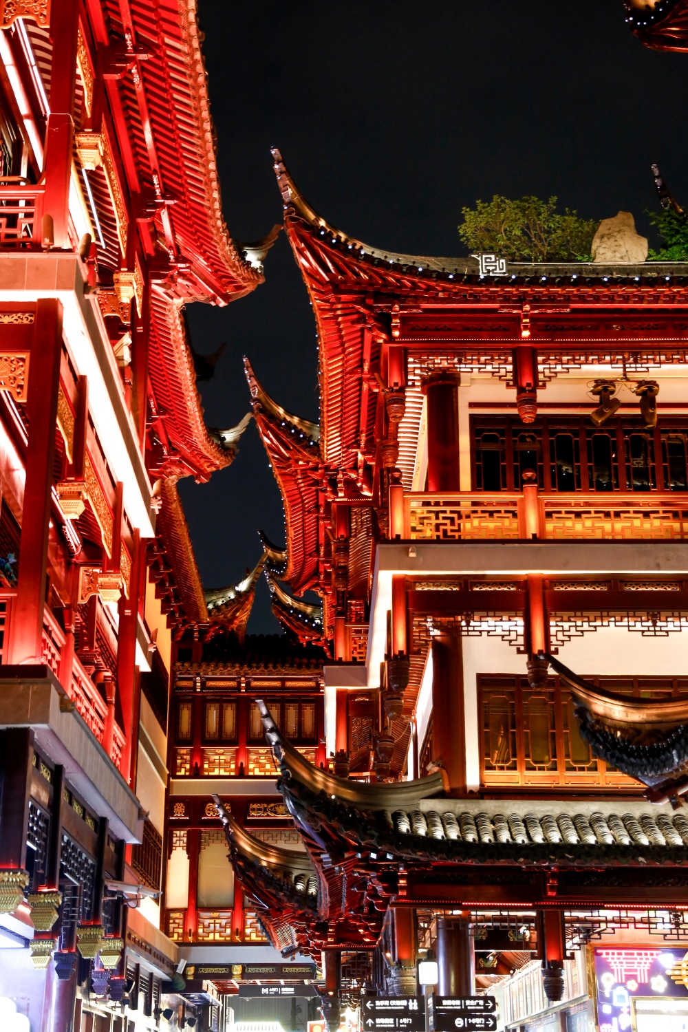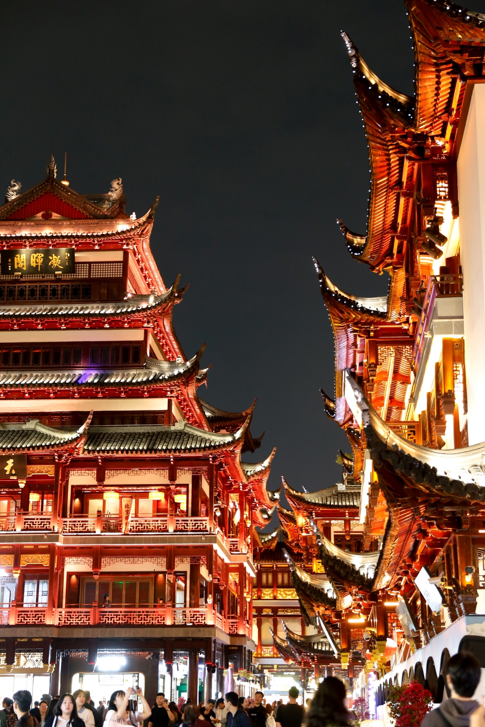 Toàn bộ khu vực không chỉ có ngôi miếu thờ Thành Hoàng – vị thần hộ mệnh của thành phố – mà còn là một tổ hợp phố đi bộ cổ, cửa hàng truyền thống, quầy ăn vặt và không gian kiến trúc lịch sử. Những mái ngói cong vút, đầu đao chạm khắc, hành lang gỗ đỏ uốn lượn, tất cả tạo nên một bức tranh sống động của Thượng Hải cổ.