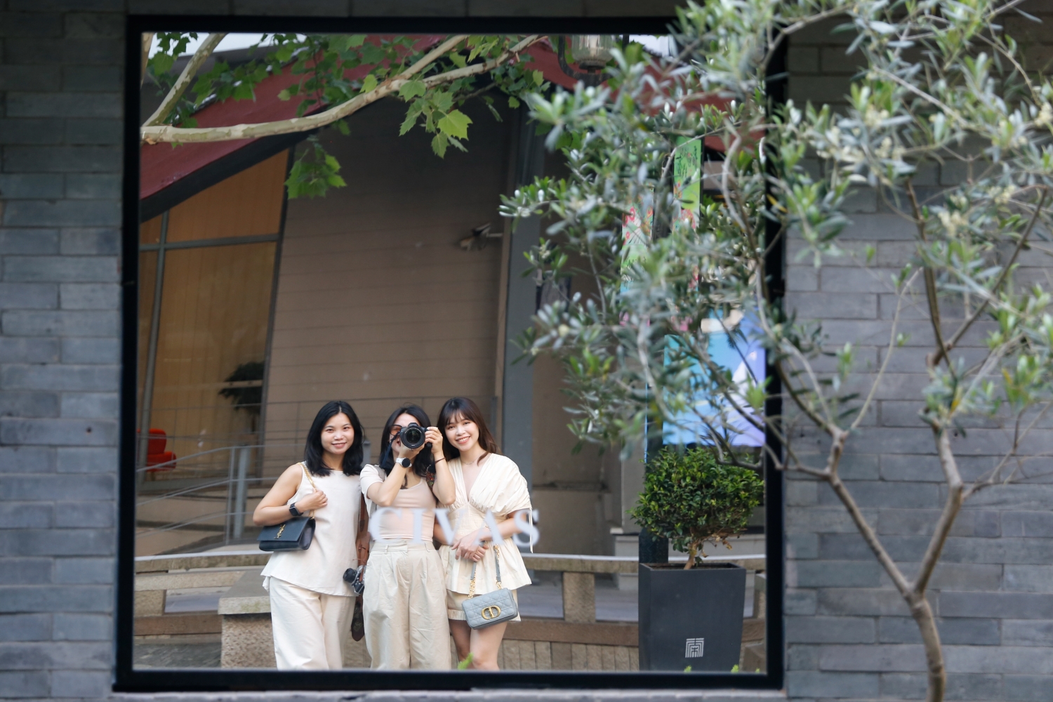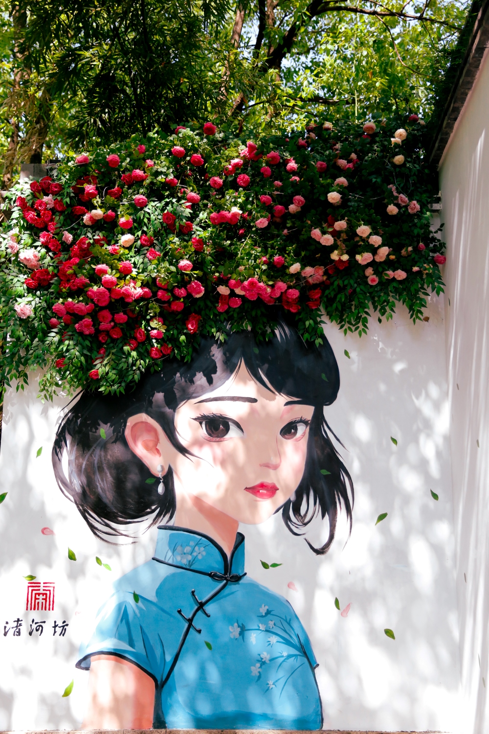 Lần nào đi Tung Của cũng mê mẩn mấy cái bức tường cô gái đội mũ hoa kiểu này. Một góc đặc trưng tại Thanh Hà Phường ở Hàng Châu