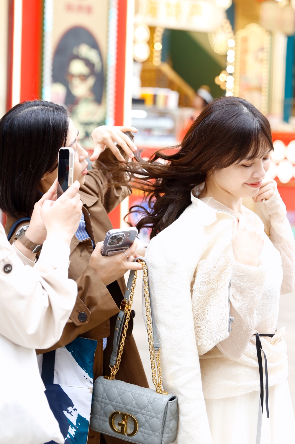 - Thậm chí lần này còn có cả ekip cầm hộ phụ kiện, chỉnh trang đầu tóc cho tui mỗi khi chụp ảnh =)))