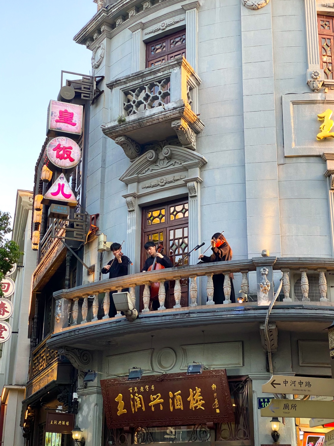 - Tại Tung Của, bạn có thể tìm thấy sự nhộn nhịp ở bất kỳ con phố nào. Rất thích xì tai biểu diễn trên ban công ở mỗi ngôi nhà cổ (ảnh này chụp vào đúng dịp chính lễ ở phố cổ Thanh Hà Phường – Hàng Châu)