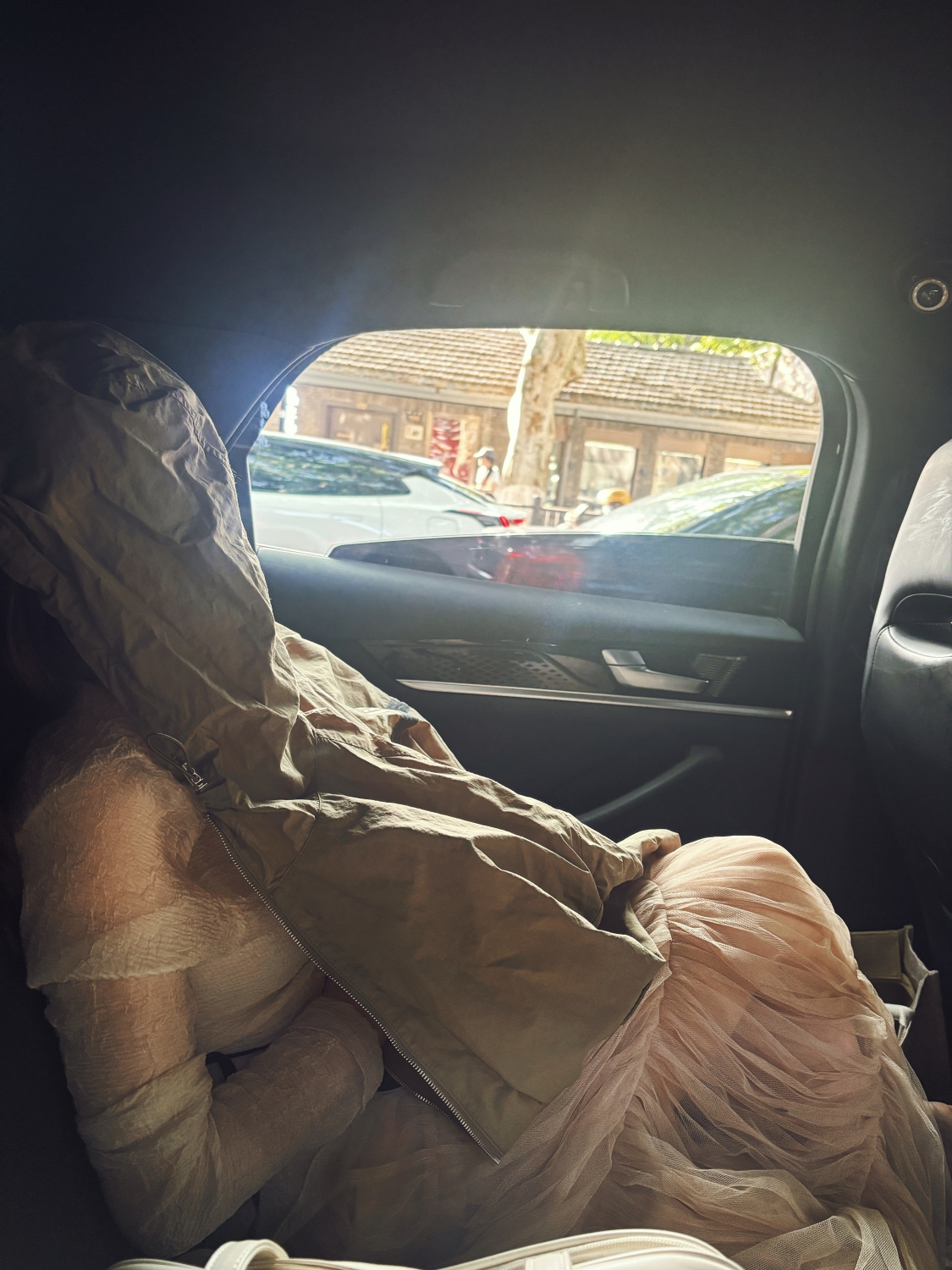 - Xong rồi lên xe dù là xe riêng hay taxi thì “phú bà” vẫn ngủ vắt lưỡi dư lày (vẫn cẩn thận trùm áo che nắng chống UV) =)))