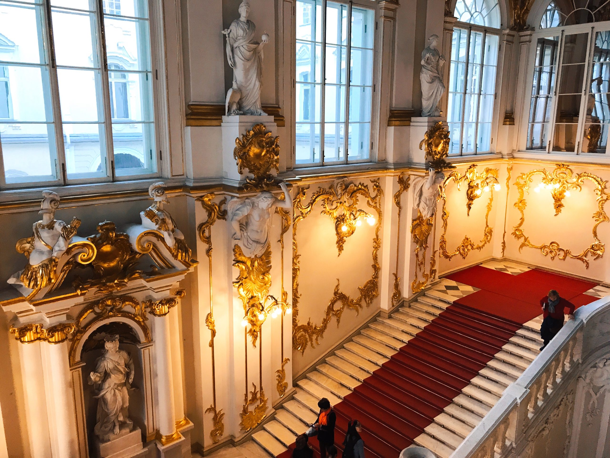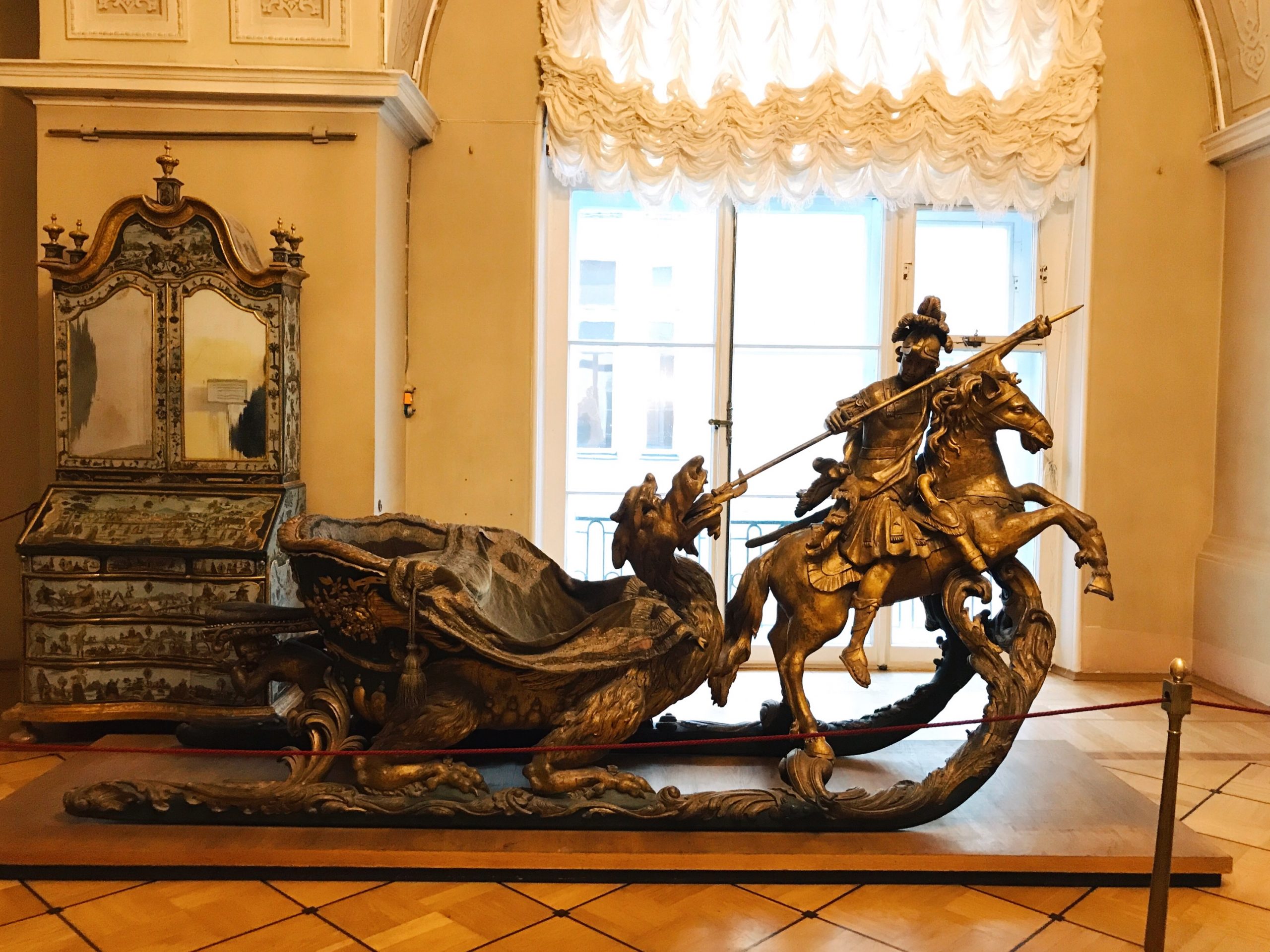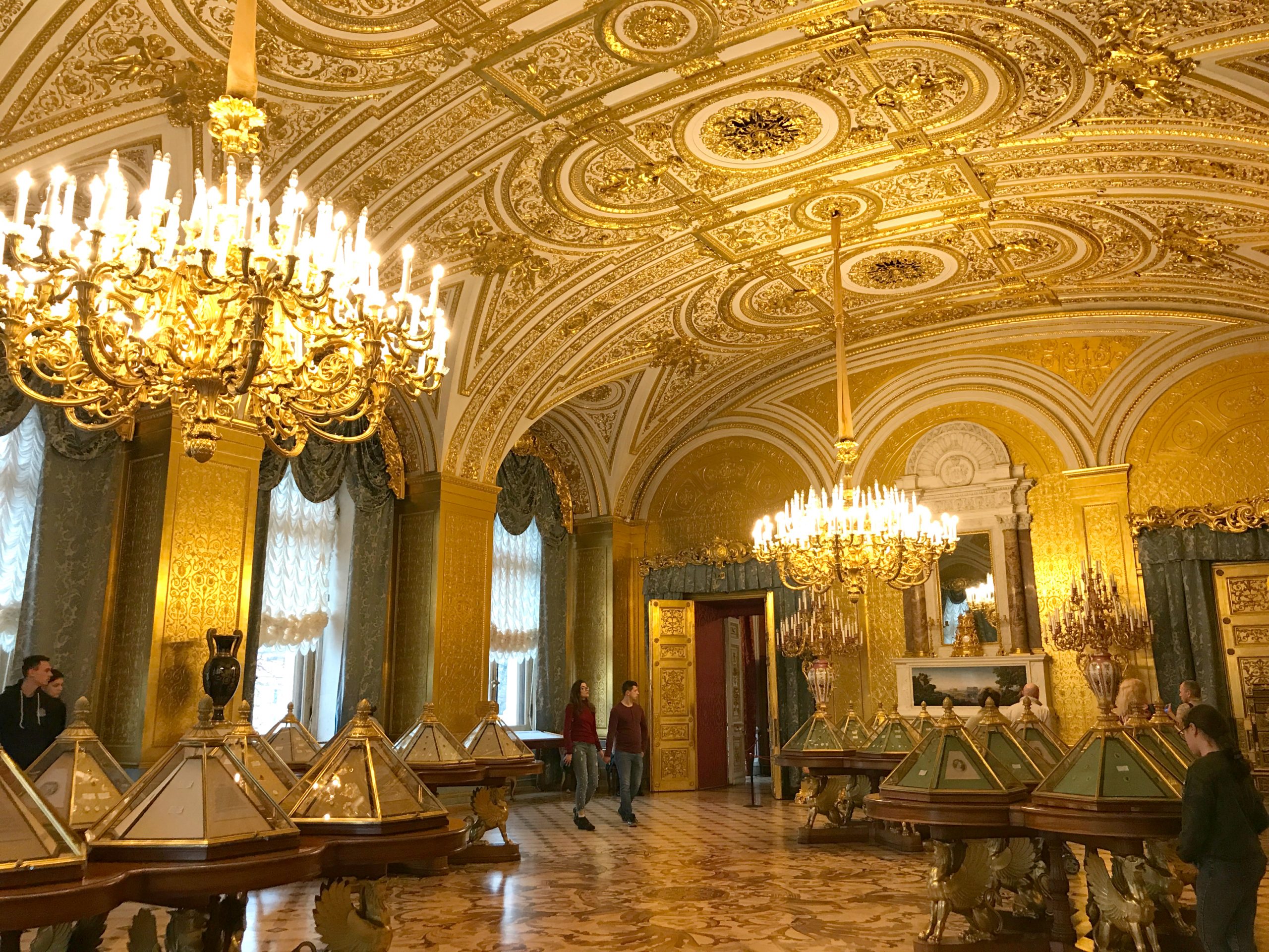 (Chú ý: Bảo tàng đóng cửa vào thứ 2 hàng tuần) Đây là nơi xứng đáng để bạn dành ra nhiều thời gian nhất khi tới St Petersburg, là nơi gói trọn tất cả tinh hoa và sự vĩ đại, là nơi lý giải tại sao St Petersburg trở thành niềm kiêu hãnh bất hủ của đất nước rộng lớn nhất thế giới này. Cung Điện Mùa Đông nhìn ra dòng sông Neva lãng mạn và nằm ngay cạnh Quảng trường Dvotsovaya Ploshad (hay còn gọi là Quảng trường Cung điện). Tại Quảng trường vẫn còn sừng sững cột trụ Alexander – tượng đài chiến thắng của nước Nga chống lại Napoleon. Thời điểm Kịt đi ngay gần ngày kỉ niệm chiến thắng phát xít 09/05 nên tại đây còn diễn ra lễ tập dượt rất hoành tráng của quân đội Nga (đậm phong cách khoa trương khoe sức mạnh của nhà anh Putin :))).
