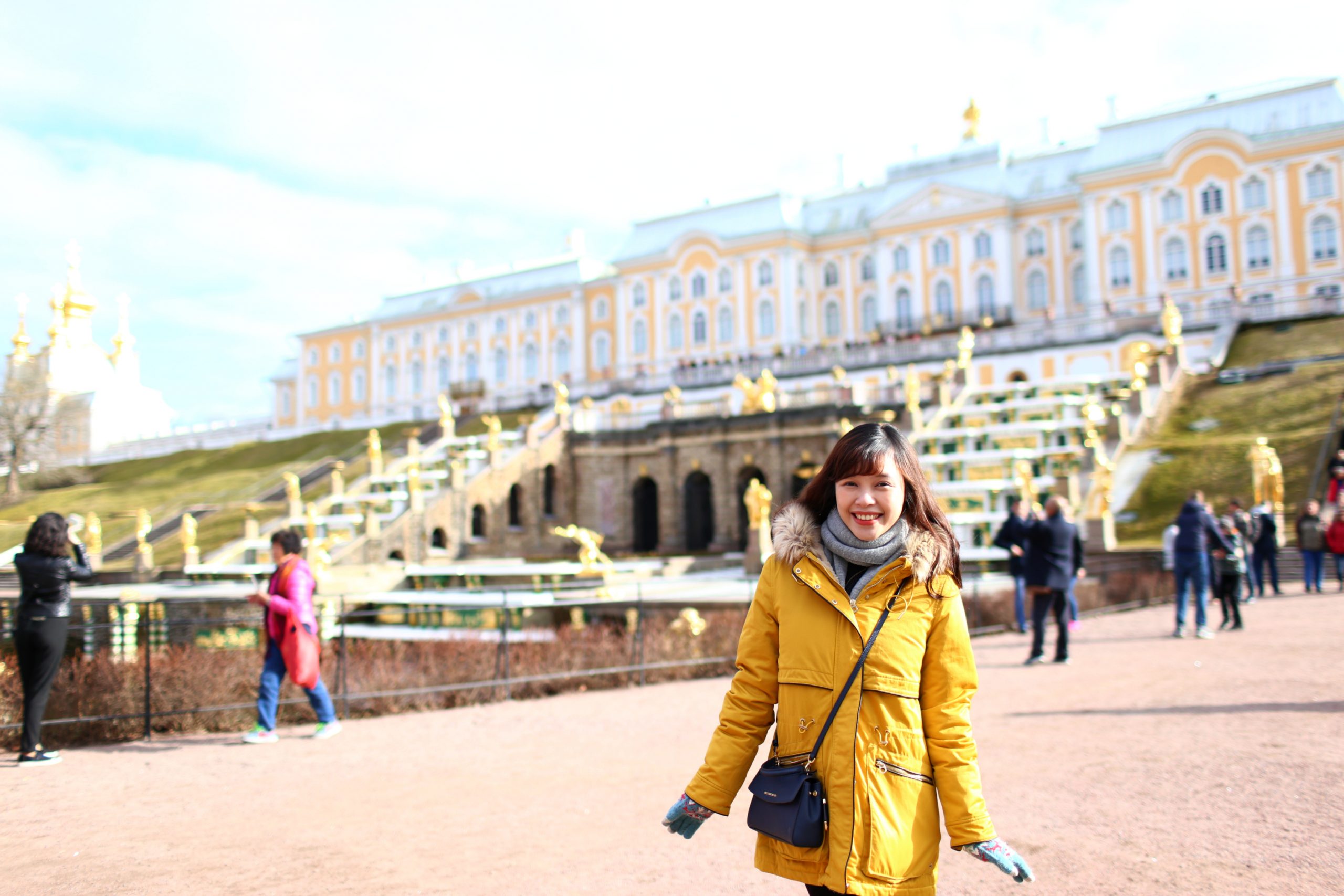 (Chú ý Cung điện Mùa Hè đóng cửa vào thứ hai hàng tuần) Cung Điện Mùa Hè nằm cách trung tâm thành phố St Petersburg khoảng 20km, đi bằng xe bus một lèo là đến nơi tiện lợi vô cùng. Cung điện được xây dựng vào đầu thế kỉ 18, sau một lần đại đế Peter của Nga viếng thăm lâu đài Versailles của Pháp (chắc cảm thấy tức tối nhà mình giàu dư lày sao không có được cái cung điện to đẹp như thằng Pháp kia nên quyết chí về phải xây riêng 1 cái :”> ). Vì là Cung Điện Mùa Hè nên cháu Kịt xui xẻo đến vào những ngày cuối xuân đã không có diễm phúc to lớn được thưởng ngoại đặc sản 140 cái vòi phun nước đồng loạt khởi xướng ;__; Đọc trên mạng thấy bảo cuối tháng 4 là vòi phun nước hoạt động rồi mà lúc cháu bé đến mọi thứ vẫn nằm im lìm không có dấu hiệu của sự sống. Nghĩ bụng chắc mấy cái vòi nước đang thì thầm to nhỏ với nhau: “Chờ con mẻ Việt Nam này đi xong thì anh em mình hãy quẩy” :'(