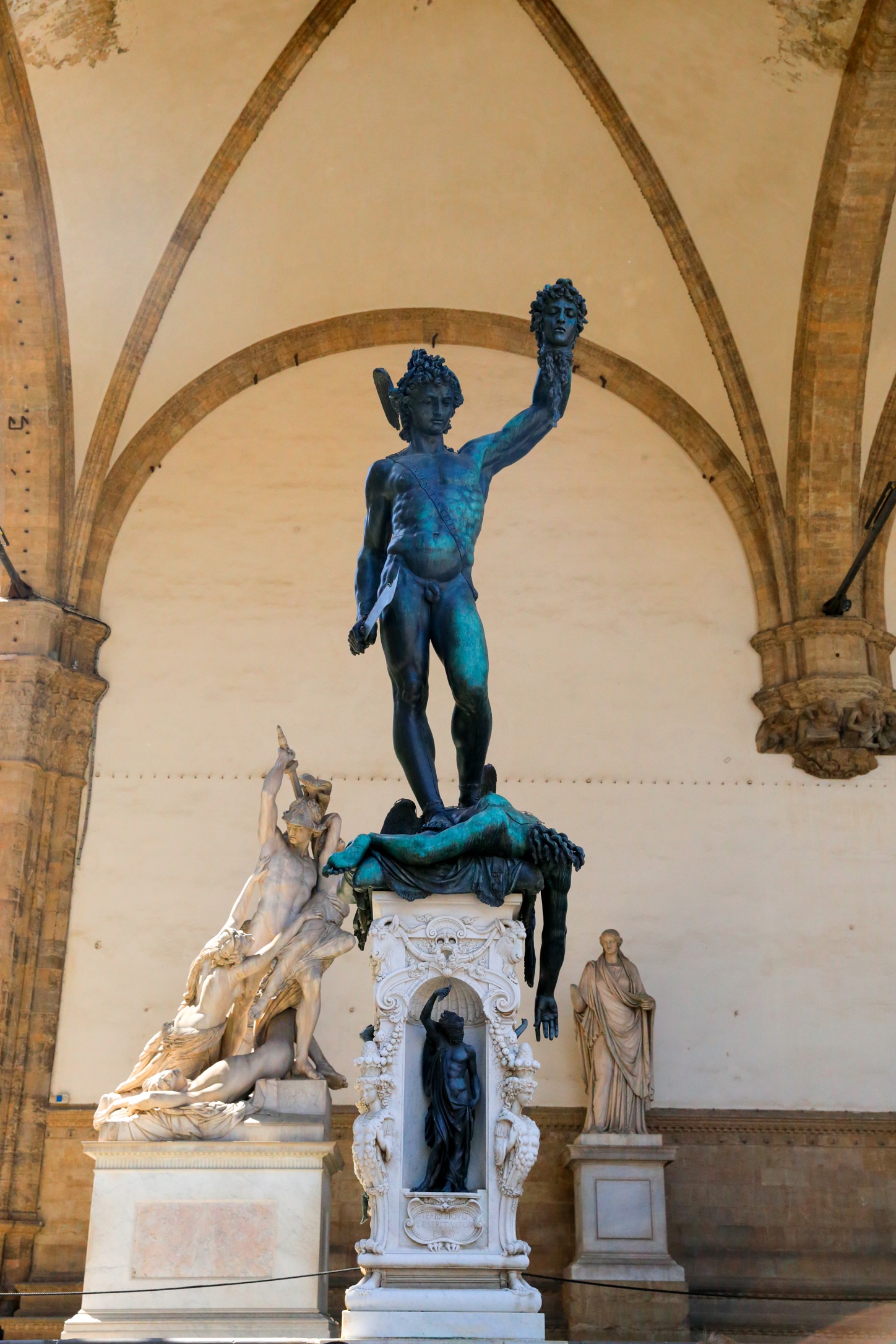 Ngay đối diện với tượng David (phiên bản copy) là Loggia dei Lanzi – một khu vực giống như một căn phòng mở với phần mái vòm khoáng đạt và những thức cột cổ điển, bên trong trưng bày các bức tượng mang đậm tinh thần nghệ thuật Phục Hưng. Loggia dei Lanzi được vào thăm quan miễn phí, tuy nhiên bạn sẽ phải xếp hàng vì nơi đây cũng giới hạn số người. Hôm Kịt tới cũng không quá đông, gần như được vào thẳng luôn.