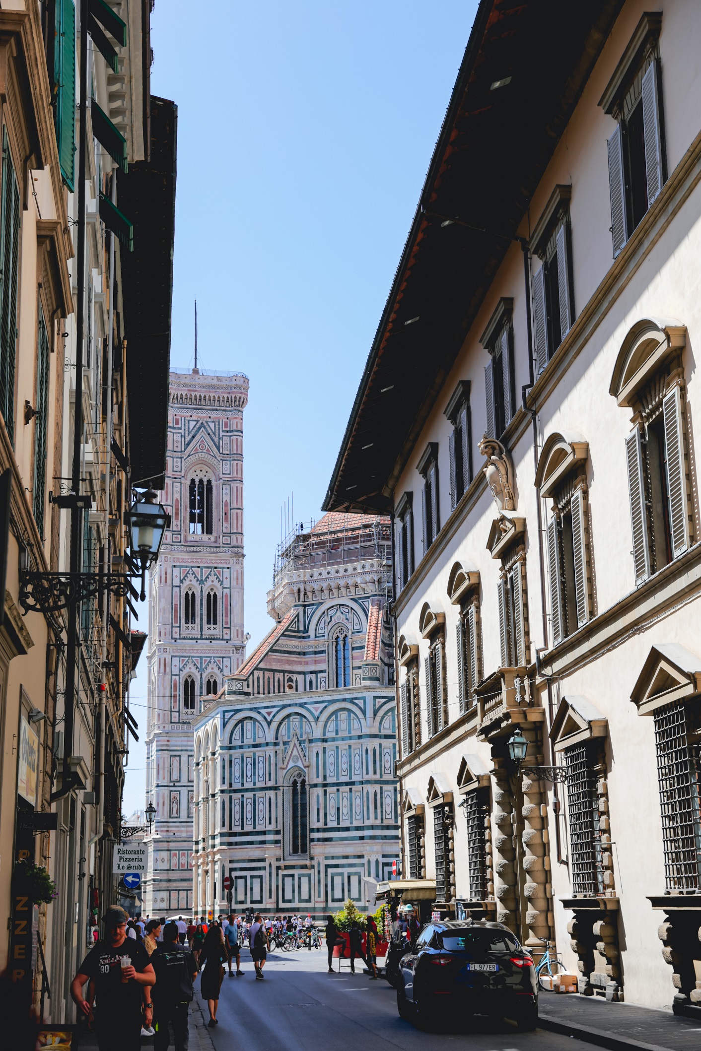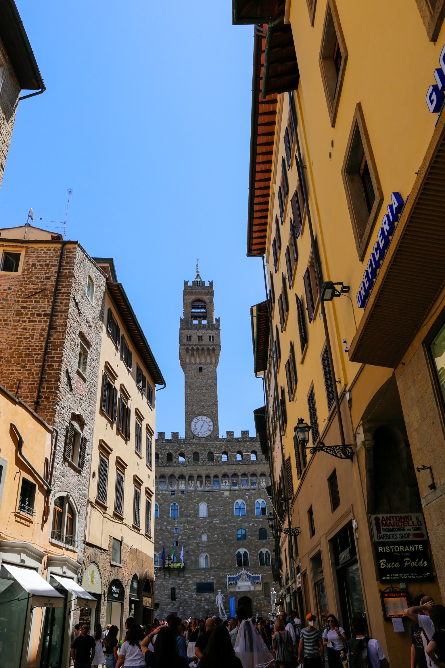 Những con đường ở trung tâm Florence với hai biểu tượng Tháp chuông Giotto và tháp đồng hồ của Tòa thị chính