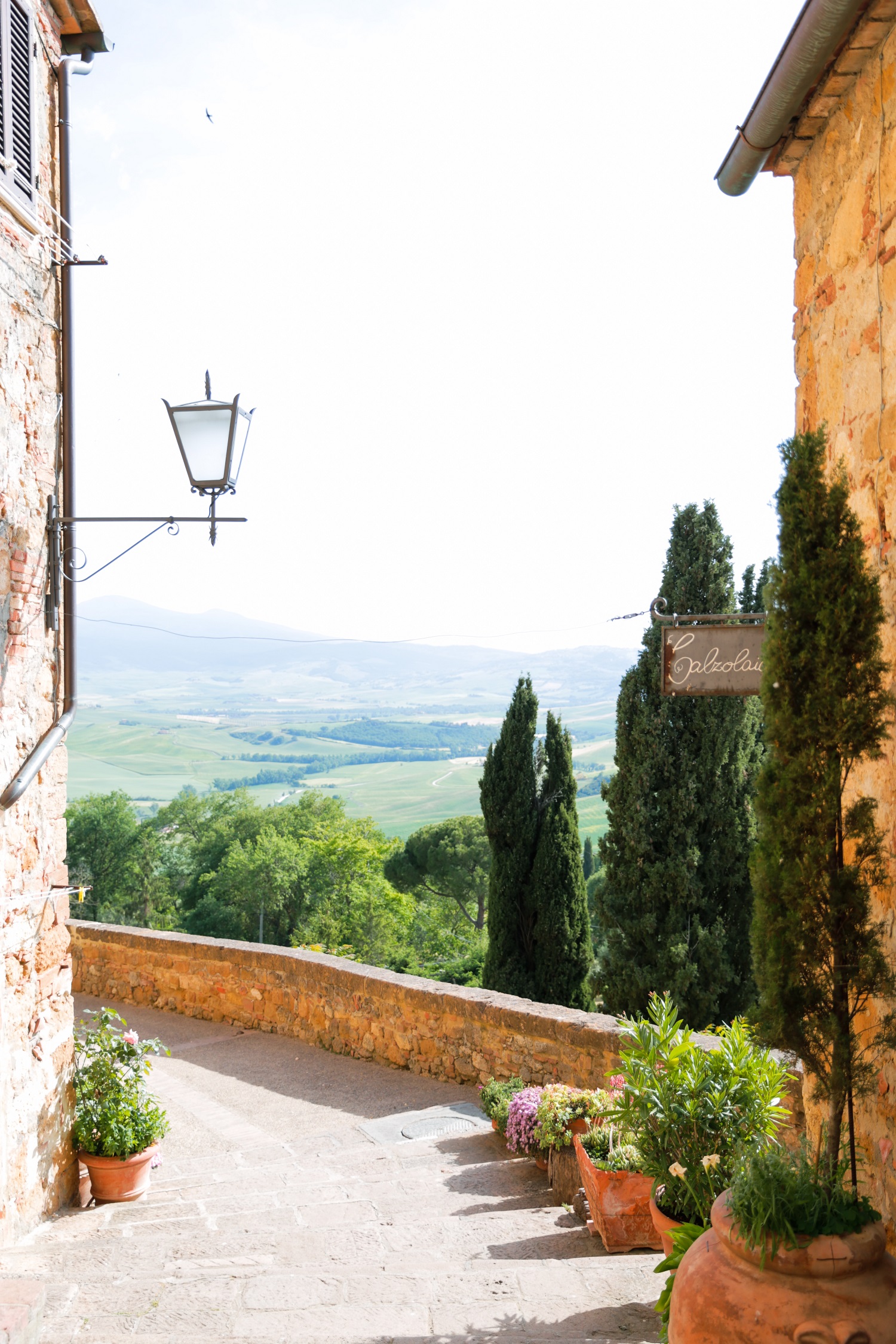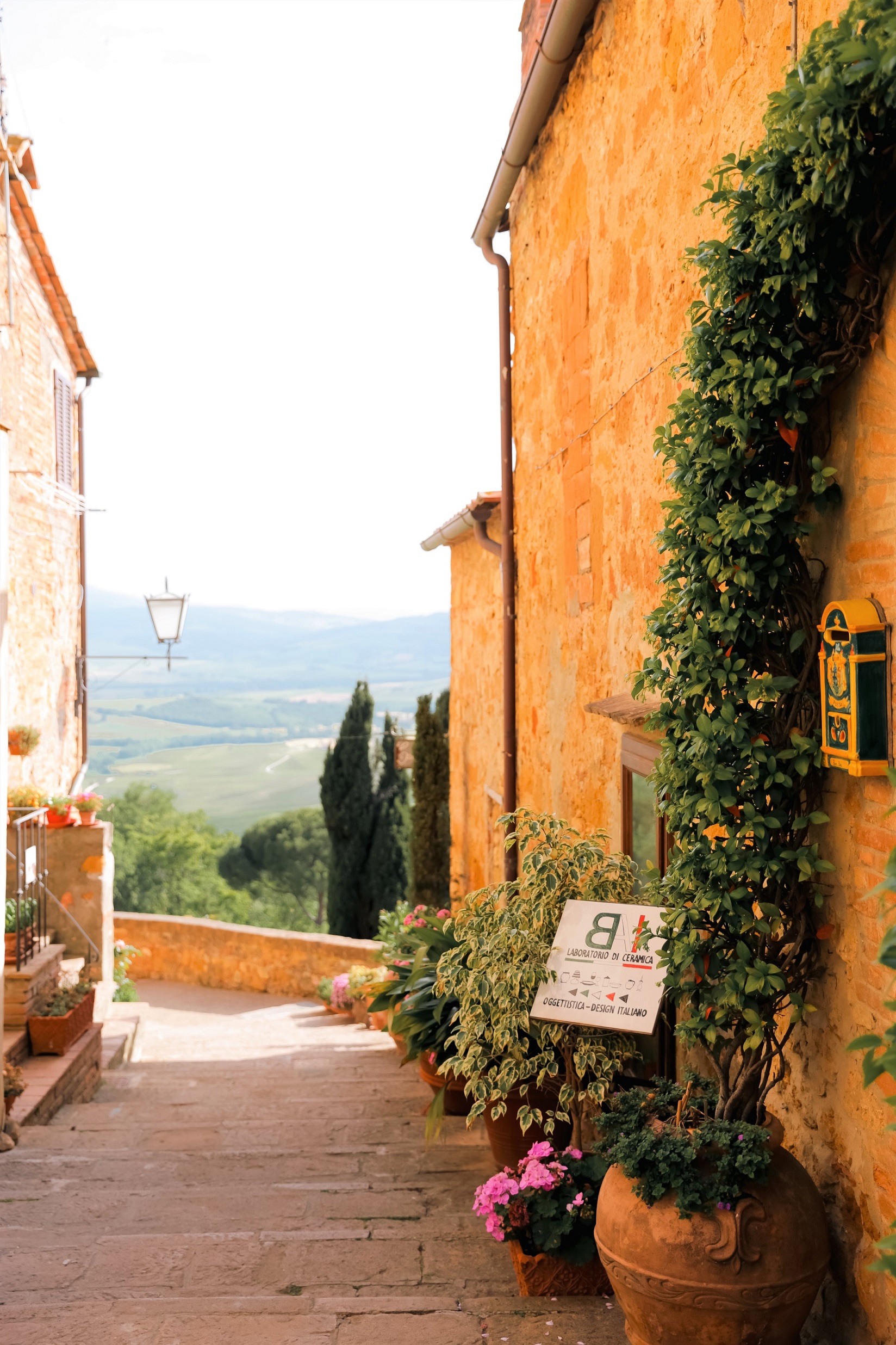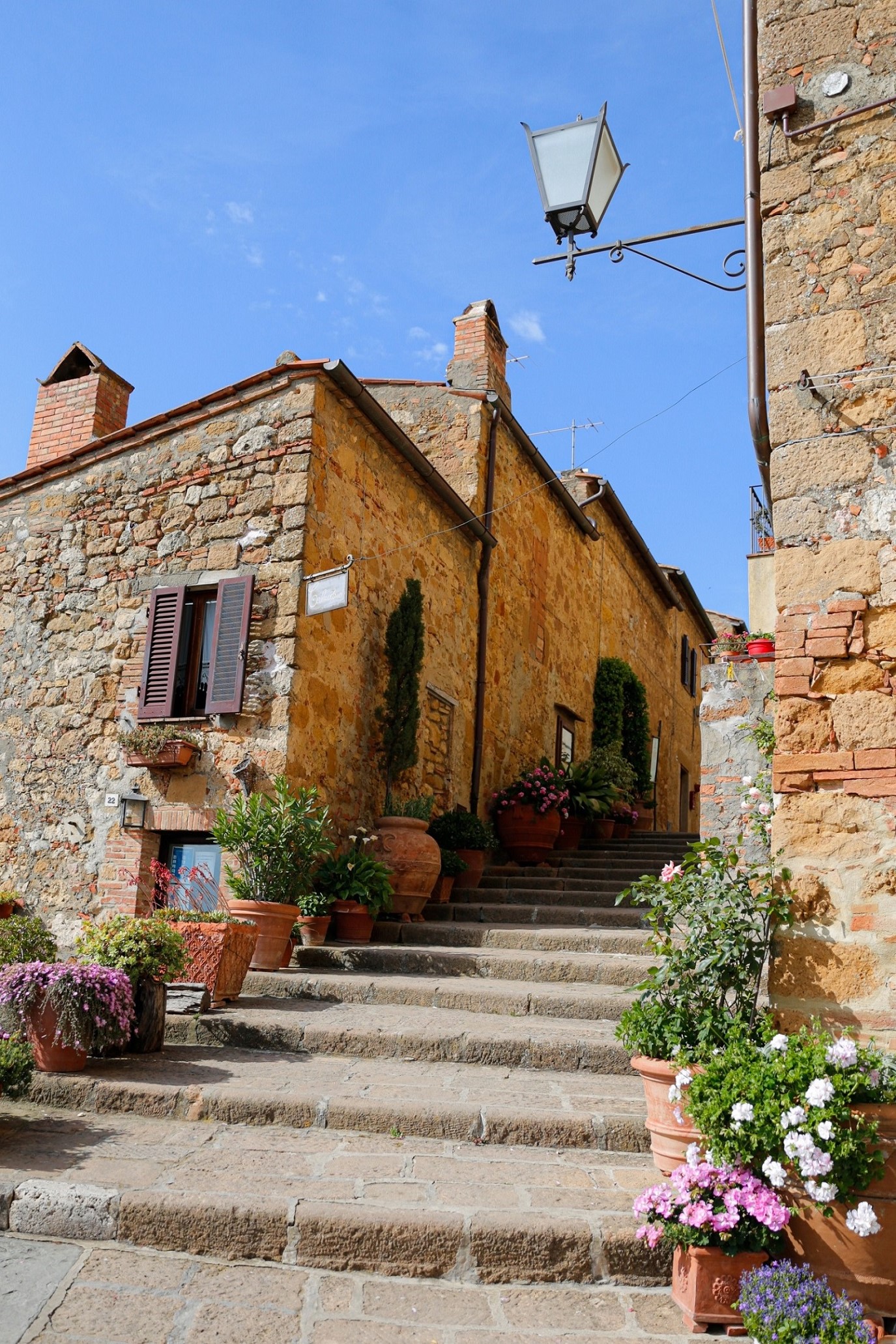 Có lẽ đây là nơi mà Kịt thấy người dân chịu khó trồng hoa nhất ở Tuscany, khi ban công hay trước cửa các ngôi nhà luôn tràn ngập sắc màu cỏ hoa xinh xắn. Đi men theo lối tường thành của Pienza, bạn sẽ được ngắm nhìn toàn cảnh vùng San Quirico d’Orcia kiều diễm. Thi thoảng bạn lại ngẩn ngơ với những cánh cổng giống như dẫn lối đến với thiên đường.