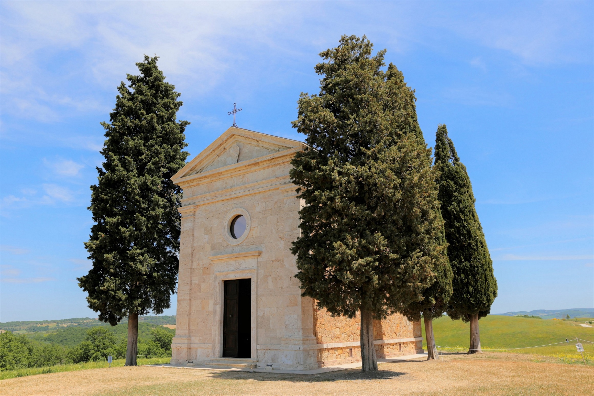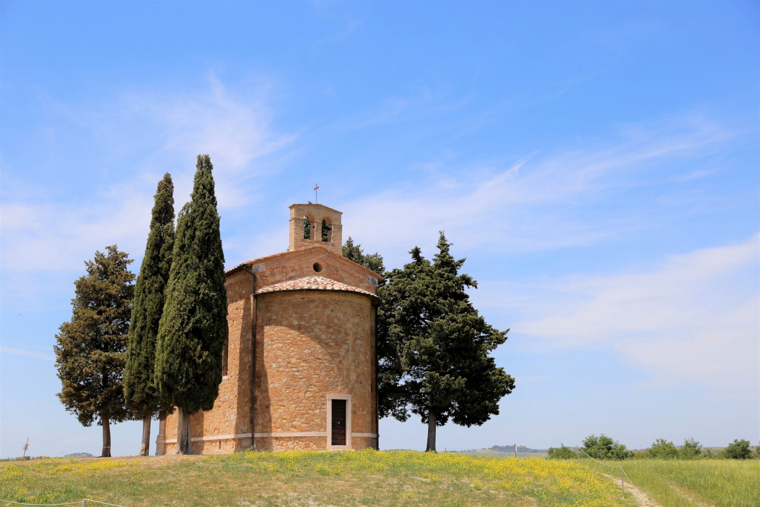 Một điểm đến thuộc hàng “must-go” khác tại Tuscany là Chapel Vitaleta (Nhà nguyện của Madonna di Vitaleta), nằm nép mình duyên dáng trên những ngọn đồi của Val d’Orcia, theo dọc con đường giữa San Quirico và làng Pienza. Chapel Vitaleta xuất hiện rất nhiều trên các tấm postcard về Tuscany, nhiều tới mức nó đã được xem như một biểu tượng của vùng đất này. Nhà thờ này cũng đã được xếp hạng là Di sản văn hóa thế giới do UNESCO công nhận.