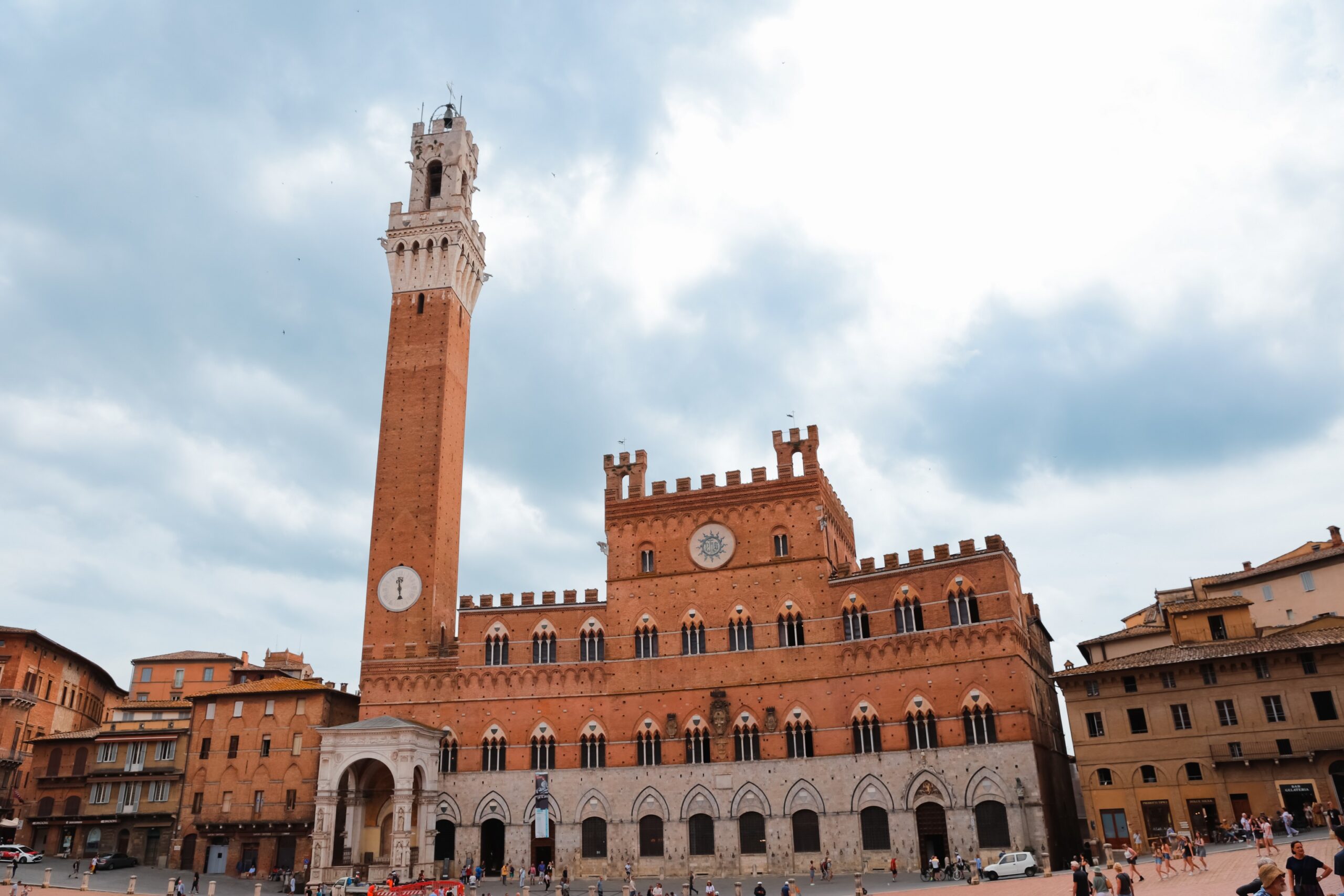 - Tại quảng trường chính của Siena với tháp chuông biểu tượng
