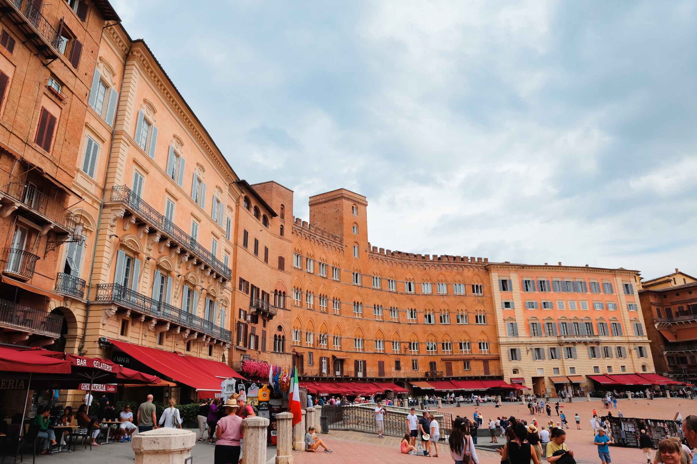Giống như nhiều thị trấn khác của vùng quê Tuscany, Siena gây thương nhớ với những sắc màu nâu vàng hoài cổ in dấu trên những tòa nhà, quảng trường, tháp chuông, đài phun nước.,.. Cái sắc màu trầm buồn ấy khiến Siena hay bất cứ một ngôi làng, một thị trấn Tuscany nào cũng mang cái dư vị khiêm nhường, kín đáo của một địa danh được bao bọc bởi thiên nhiên hùng vĩ và lặng lẽ tồn tại trong bao thế kỷ. Piazza Del Campo có thể xem là “xương sống” của Siena khi mọi hoạt động, cuộc sống của thị trấn đều xoay quanh quảng trường Trung cổ xinh đẹp này.