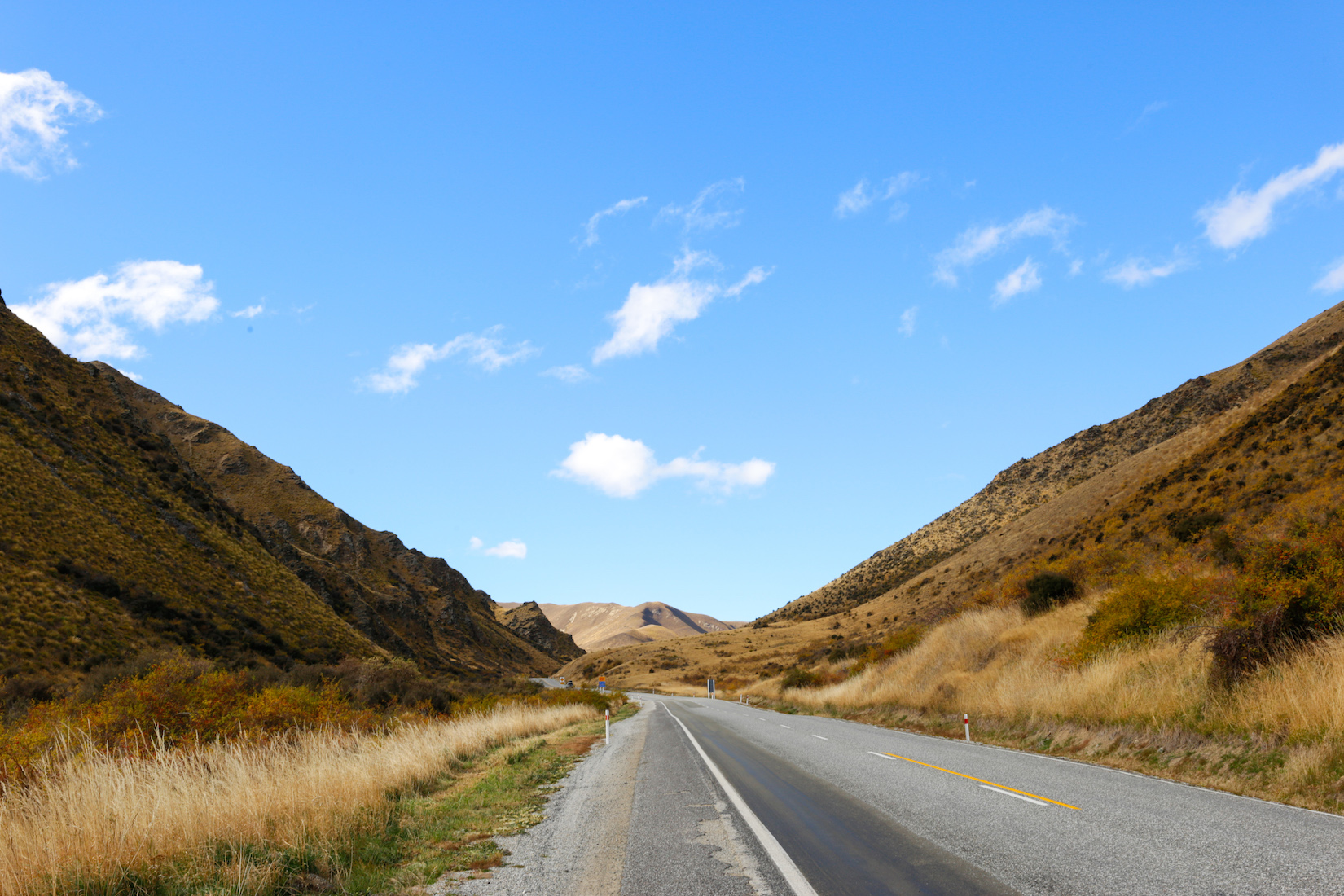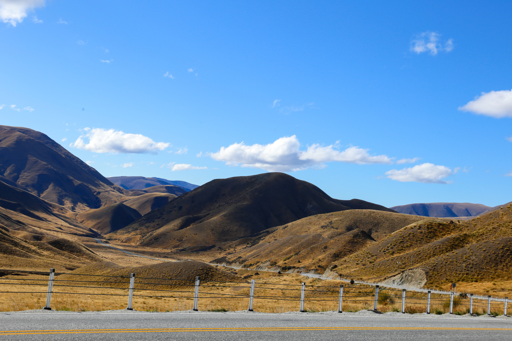 Cung đường đi Mt Cook có lẽ là một trong những đoạn road trip ấn tượng nhất với Kịt, cảm giác như một bản giao hưởng với đủ cung bậc từ nhẹ nhàng lãng mạn đến bi tráng kịch tính. Bạn sẽ đi qua con đèo Lindis Pass với những đồi núi trập trùng nối tiếp nhau. Màu nâu cằn úa của núi kết hợp với màu vàng của cỏ lau, mix thêm với tiếng hát lên đồng xì tai “quằn quại” đặc trưng của Tùng Dương mà hai đứa bật trong ô tô càng khiến khung cảnh nơi đây thêm phần dramatic.