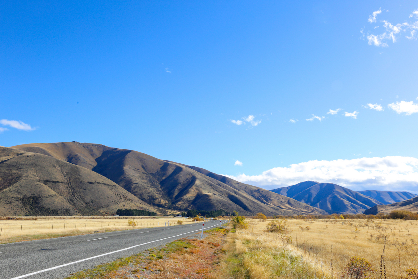 Đảo Nam vốn ít người sinh sống nên con đường lúc nào cũng vắng vẻ theo kiểu một mình một chiếc xe bon bon chạy. Thế nhưng đường đi đến Mt Cook xem ra thấm đẫm nhất cái hương vị hoang sơ tới mức hoang vu, lắm lúc khiến người ngồi trong xe phải rùng mình vì sự rộng lớn vĩ đại của thiên nhiên.