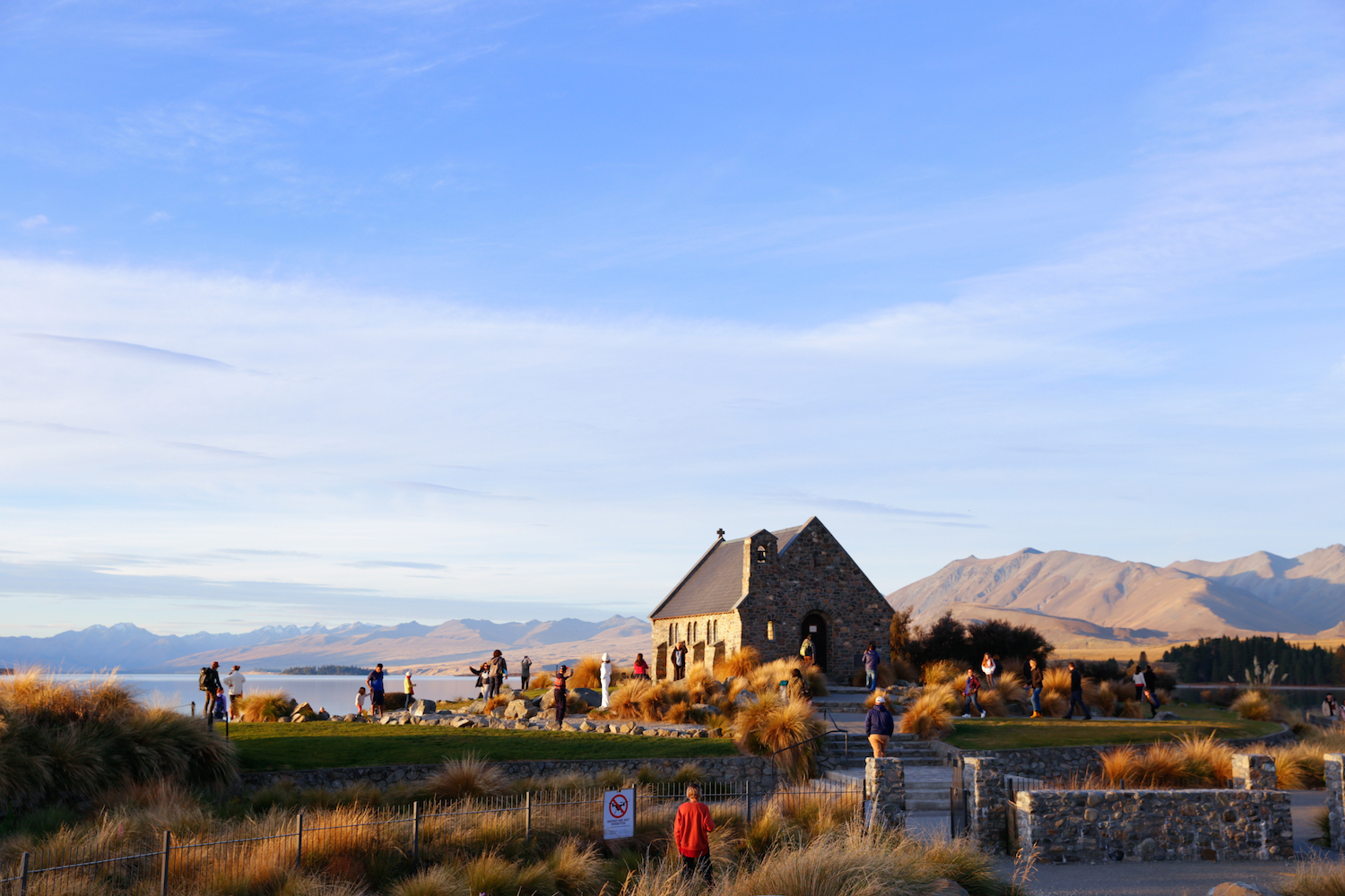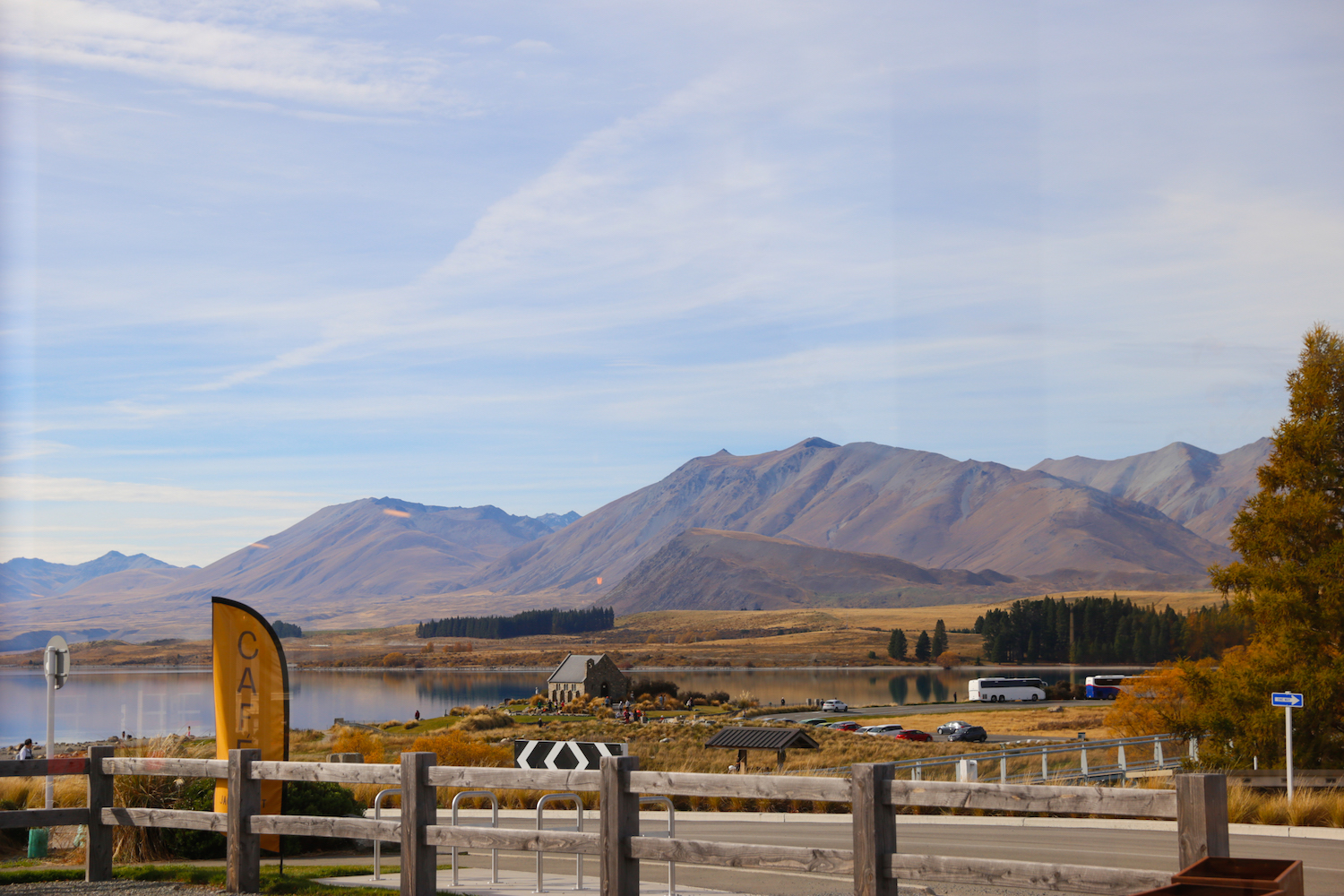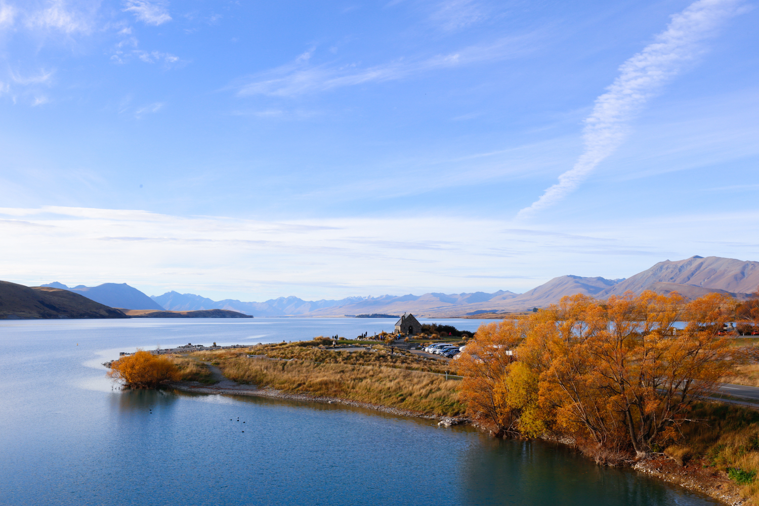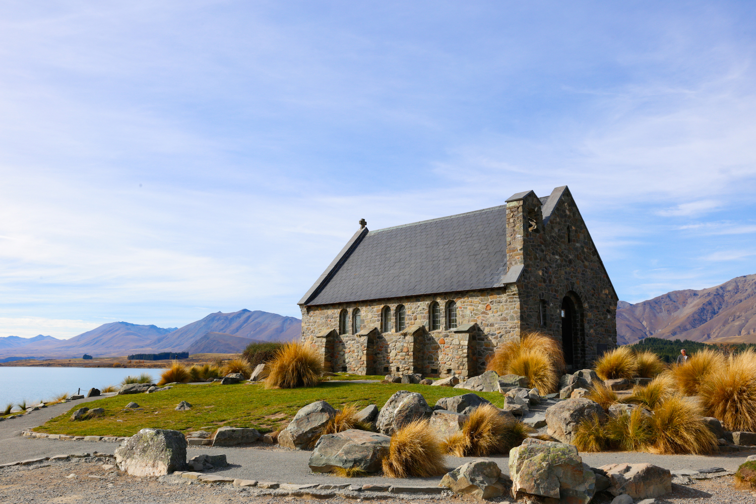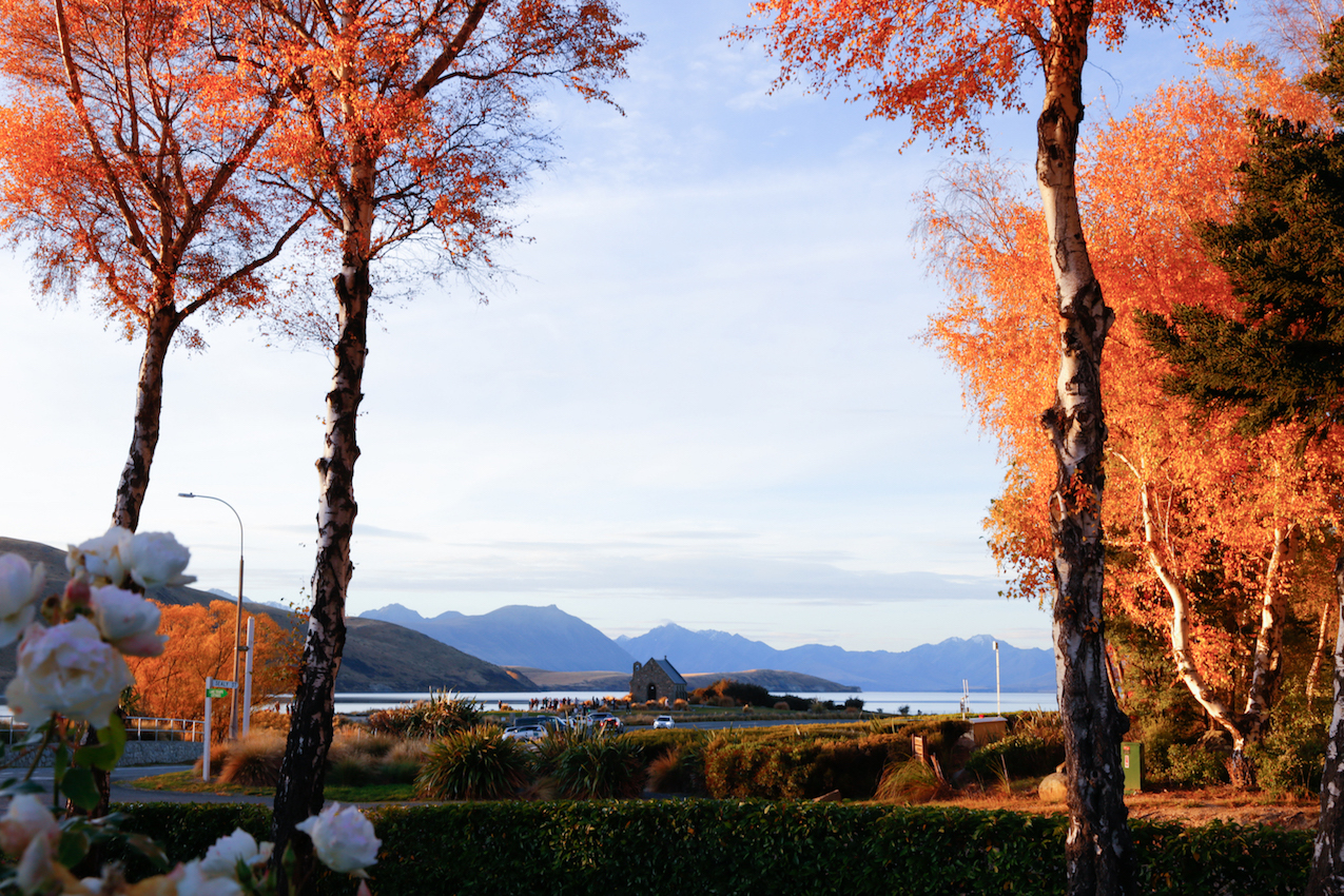 Ăn trưa tại nhà hàng Jack’s Rabbit xong, hai đứa lái xe về lại The Church of the Good Shepherd – linh hồn của thị trấn. Nhà thờ cổ kính này được xây dựng vào năm 1935 như một nơi để tưởng nhớ những người định cư đầu tiên tại New Zealand, cũng là một trong những nơi được chụp ảnh nhiều nhất trên cả nước. Luôn nằm trong danh sách mười hai nhà thờ đẹp nhất thế giới, The Church of the Good Shepherd quyến rũ du khách bởi vẻ đẹp nguyên sơ mộc mạc, cũng như vị trí e ấp của một “khung cửa sổ thu nhỏ” bao trọn mỹ cảnh núi non hồ nước xung quanh.